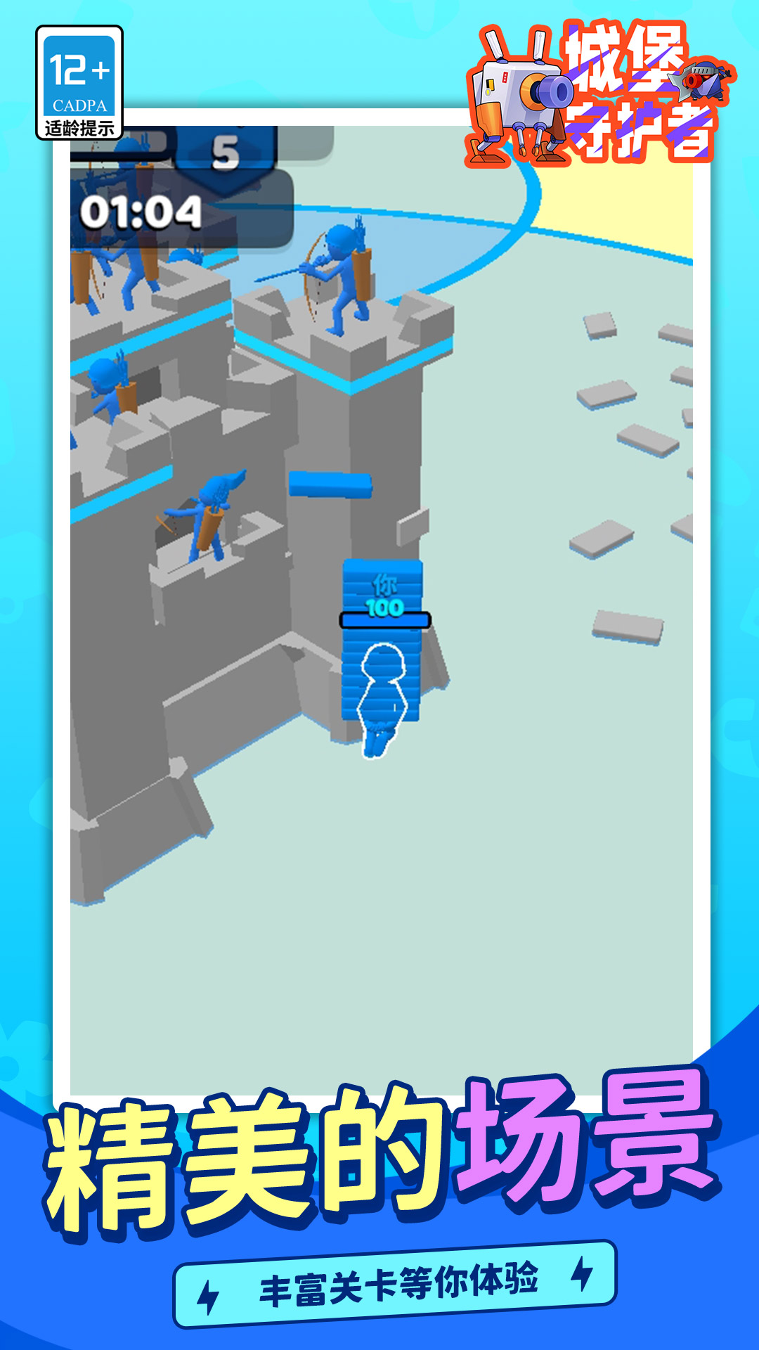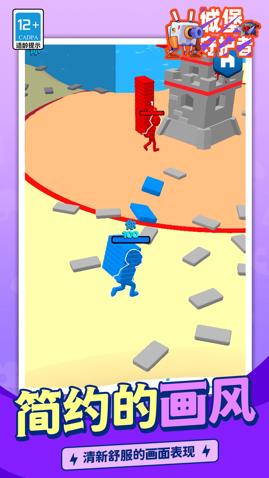 《城堡守卫者》是一款趣味堡垒塔防休闲小游戏。游戏中,玩家需要招募士兵,储备堡垒的劳动力与防卫战斗力,需要派出士兵去城外收集砖块去加固堡垒墙壁加强防御力,抵御即将到来的入侵兵团,并派出士兵击败敌军。超多种类的防御塔玩家可以自由组合,这样可以爆发出不同的战斗效果。控制好你的角色在场地中建造城堡占领地盘,快来大乱斗吧!