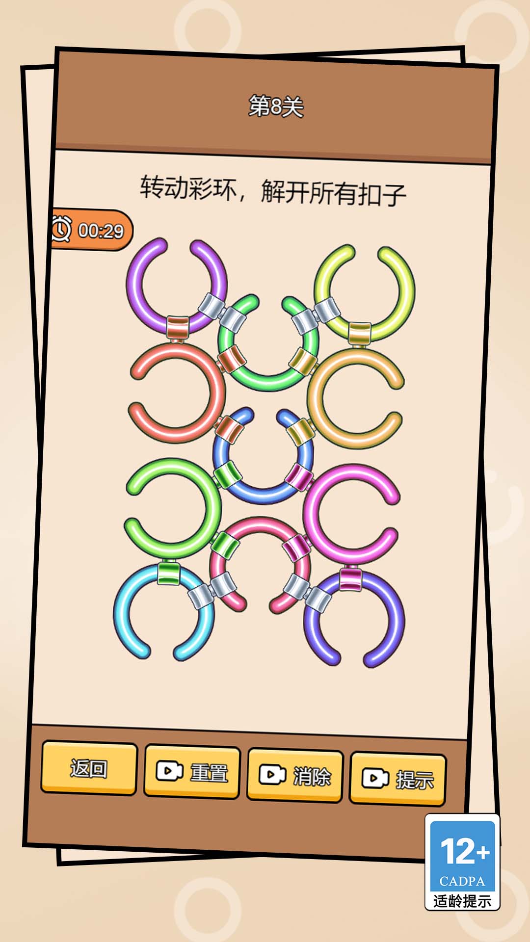 这是一款令人上瘾的休闲解谜游戏。玩家需要在旋转的游戏板上放置各种形状的图形,使它们恰到好处地填满整个板面。挑战不仅在于形状的选择,还在于合理利用有限的空间。游戏设有多个关卡,每一关都有独特的挑战,让玩家的智力得到锻炼的同时,尽情享受轻松愉悦的游戏体验。快来转转转,展现你的高超解谜技巧吧