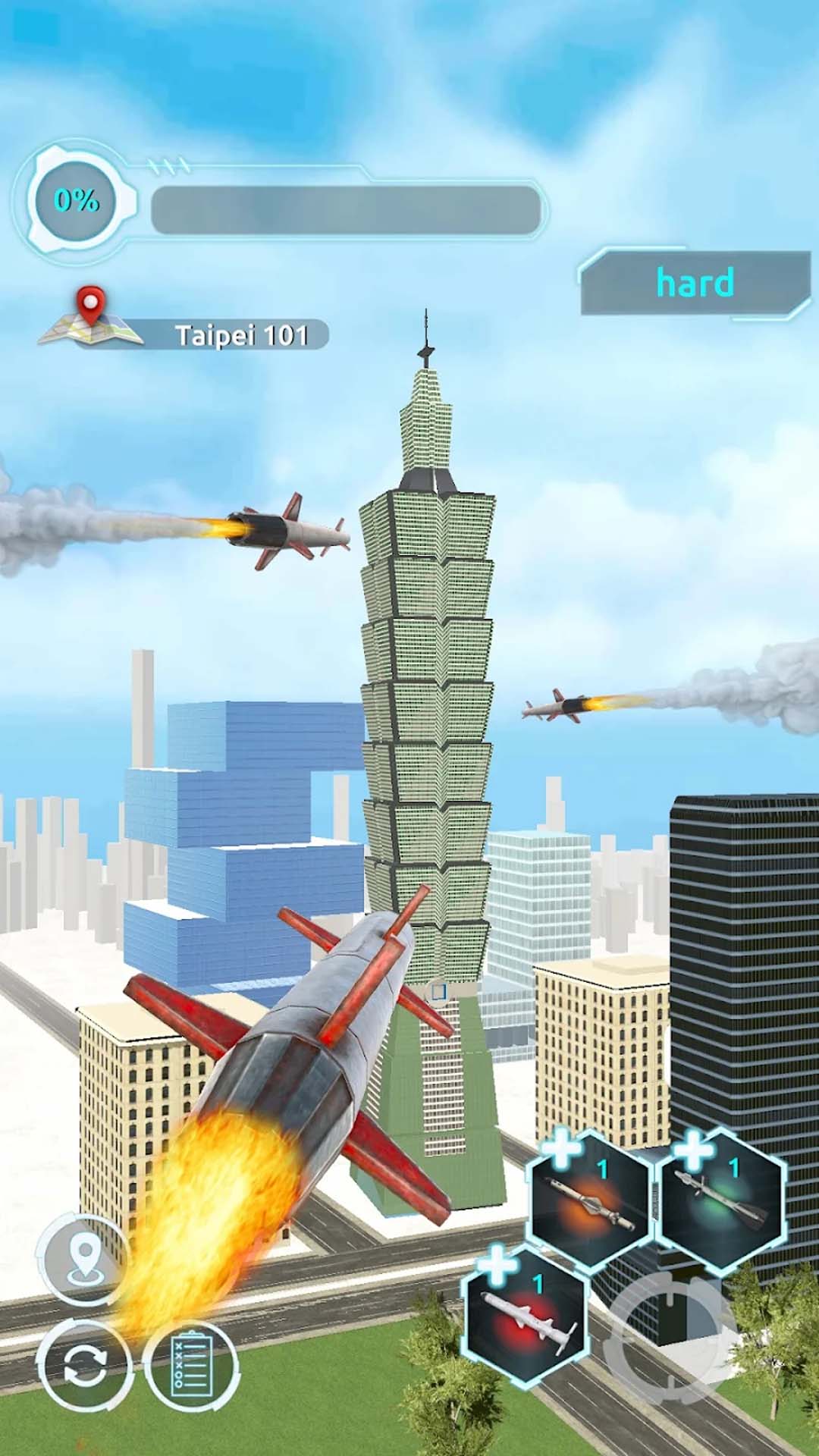 在这款城市破坏游戏中,您只有一个目标:拆除城市周围的非法建筑。 因此,锁定您的导弹并发射它们以摧毁目标建筑物、地标、摩天大楼、桥梁、工厂和车辆。 在沙盒环境中拆除一切! 砸碎太阳能电池板和地标。摧毁堡垒、摧毁高层公寓,并用沉浸式音效和高清爆炸粒子砸碎摩天大楼。 作为一名拆除专家爆破建筑物旨在通过超过 300 个关卡满足你的粉碎和破坏需求。