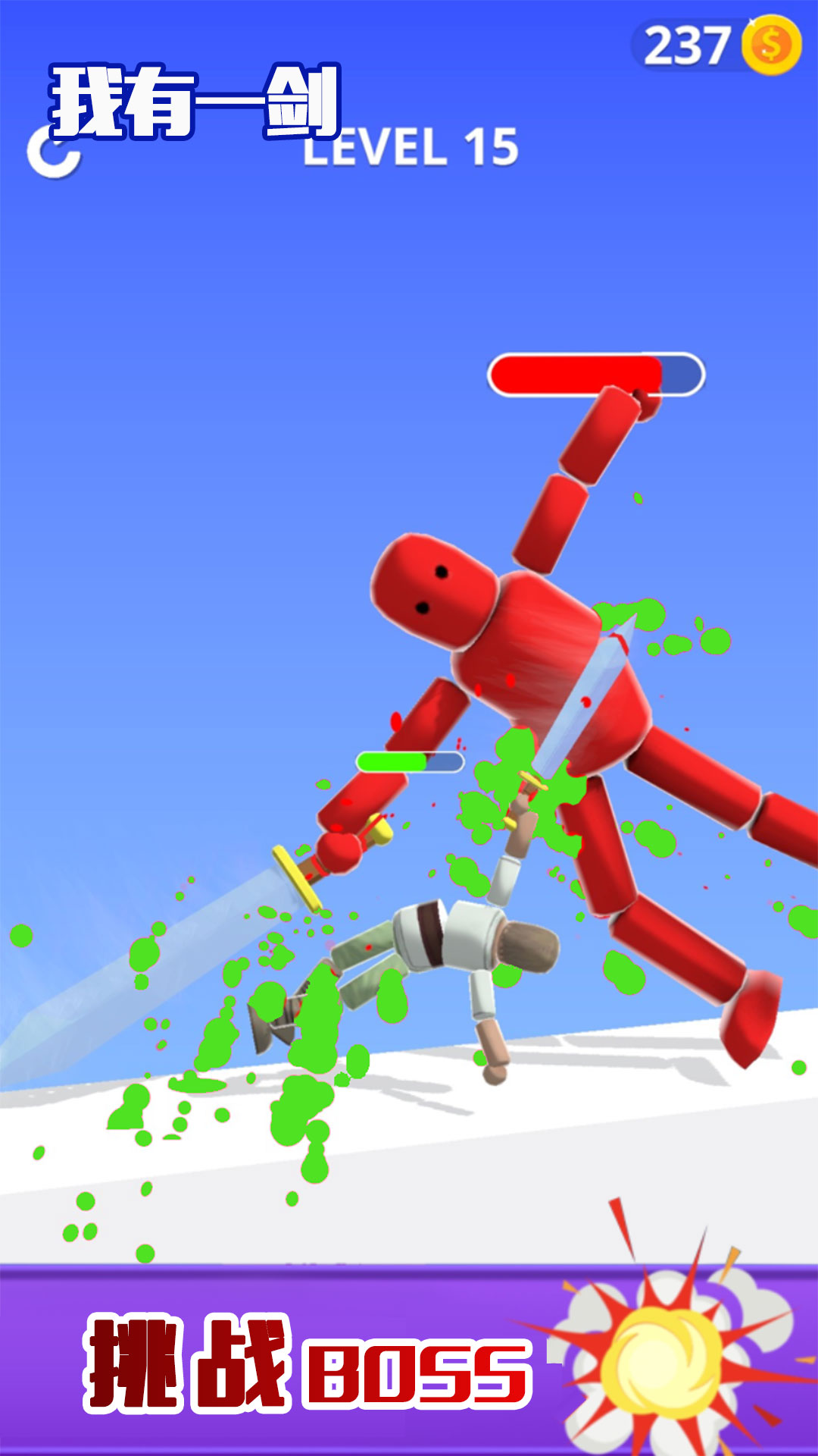 《我有一剑》是一款滑稽魔幻的冒险格斗游戏,游戏中,你将成为一个布娃娃战士,手持长剑,翻转、漂移、躲闪、勇猛出击,打败对手。