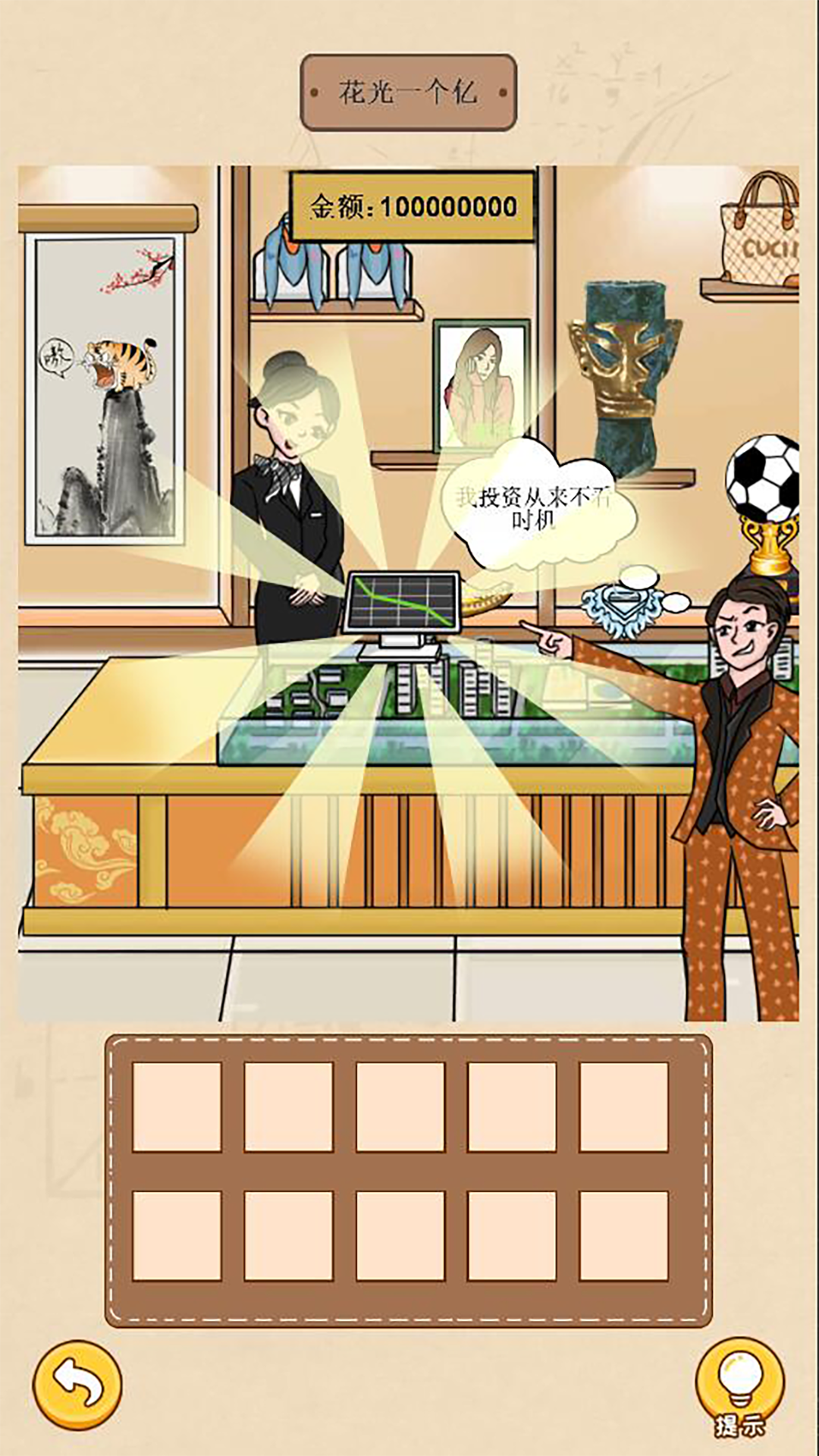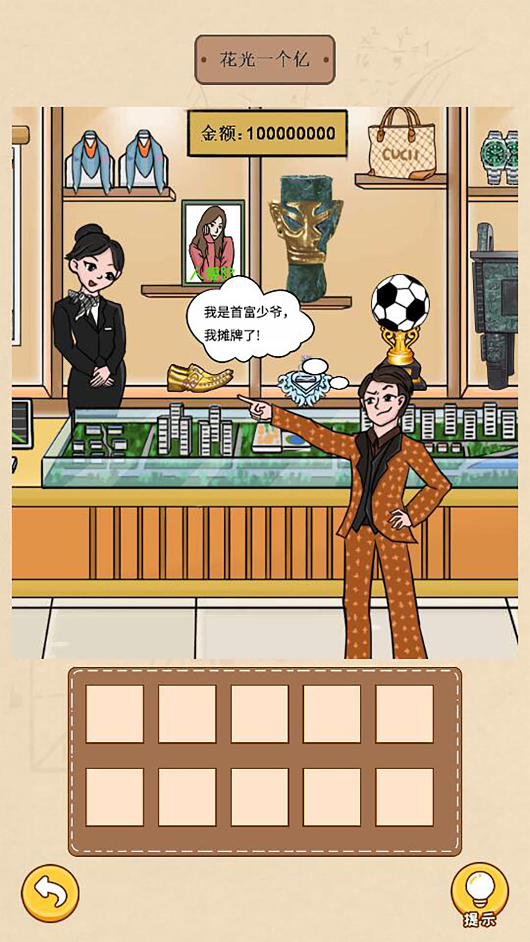《请叫我首富少爷》这是一款休闲益智类小游戏,当你继承家产十个亿,你会如何去全部花呢,快来思考一下,将这十个亿全部花完,快来挑战吧。