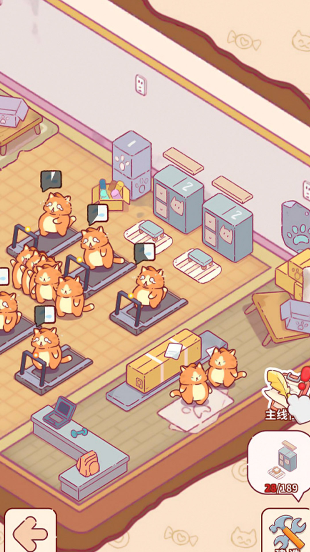 经营你的猫健身房,并使其逐渐壮大,打造成为首屈一指的传奇猫咪健身帝国。首先,让我们先来点击猫箱,招揽猫咪顾客吧!轻松点击,即可招揽大量顾客。招揽顾客将有助于提升健身房的收入并加速其规模的扩大。随着收入的增长,你可以升级设施,翻新健身房,解锁更多的房间,并装饰你的猫咪健身房。健身房的扩建,犹如开启了潘多拉的魔幻宝箱,你可以捕捉猫咪们在使用各种健身器材奋力运动时,令人忍俊不禁的可爱状态,难以抗拒的呆萌特质,超级治愈!
