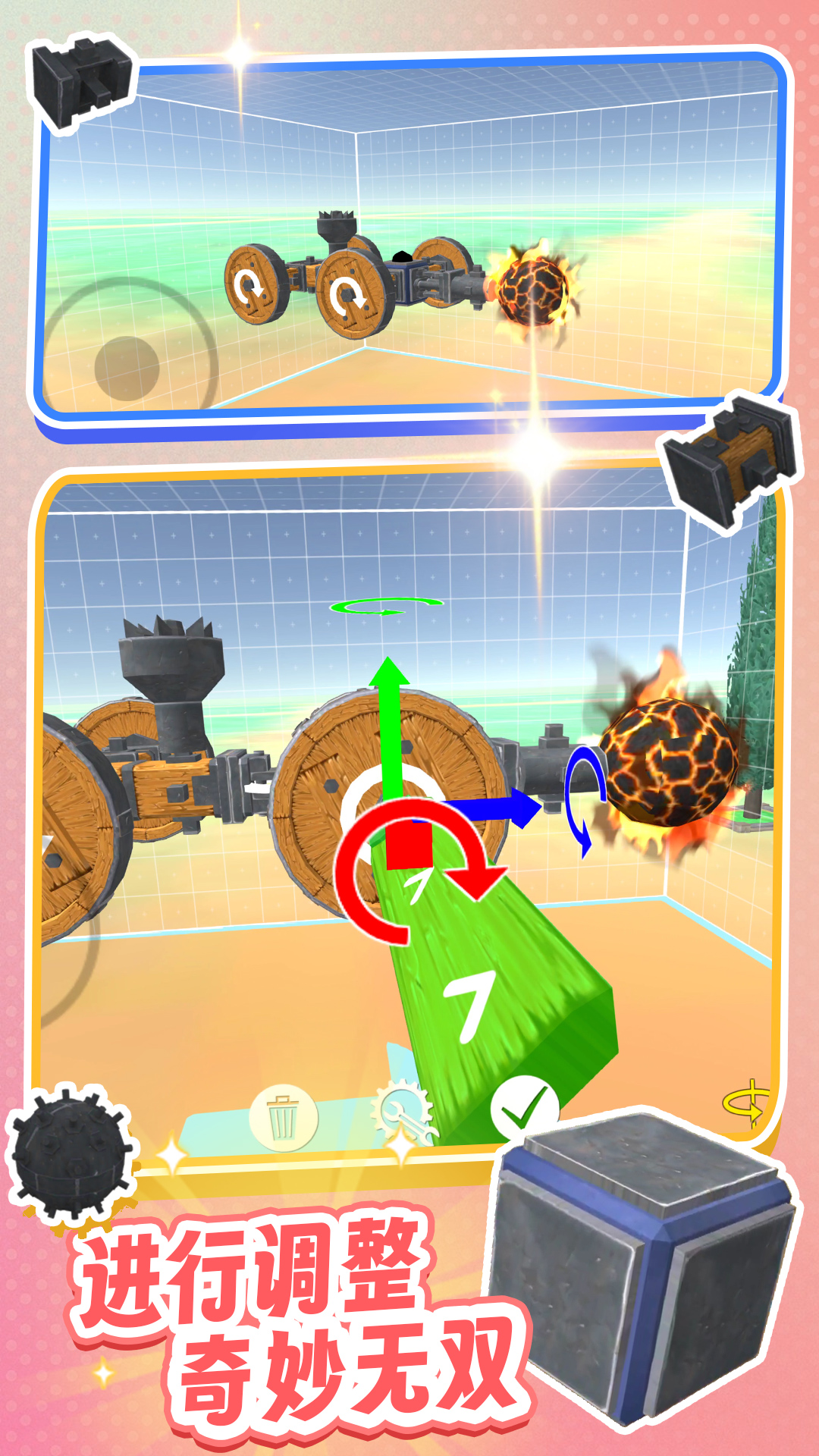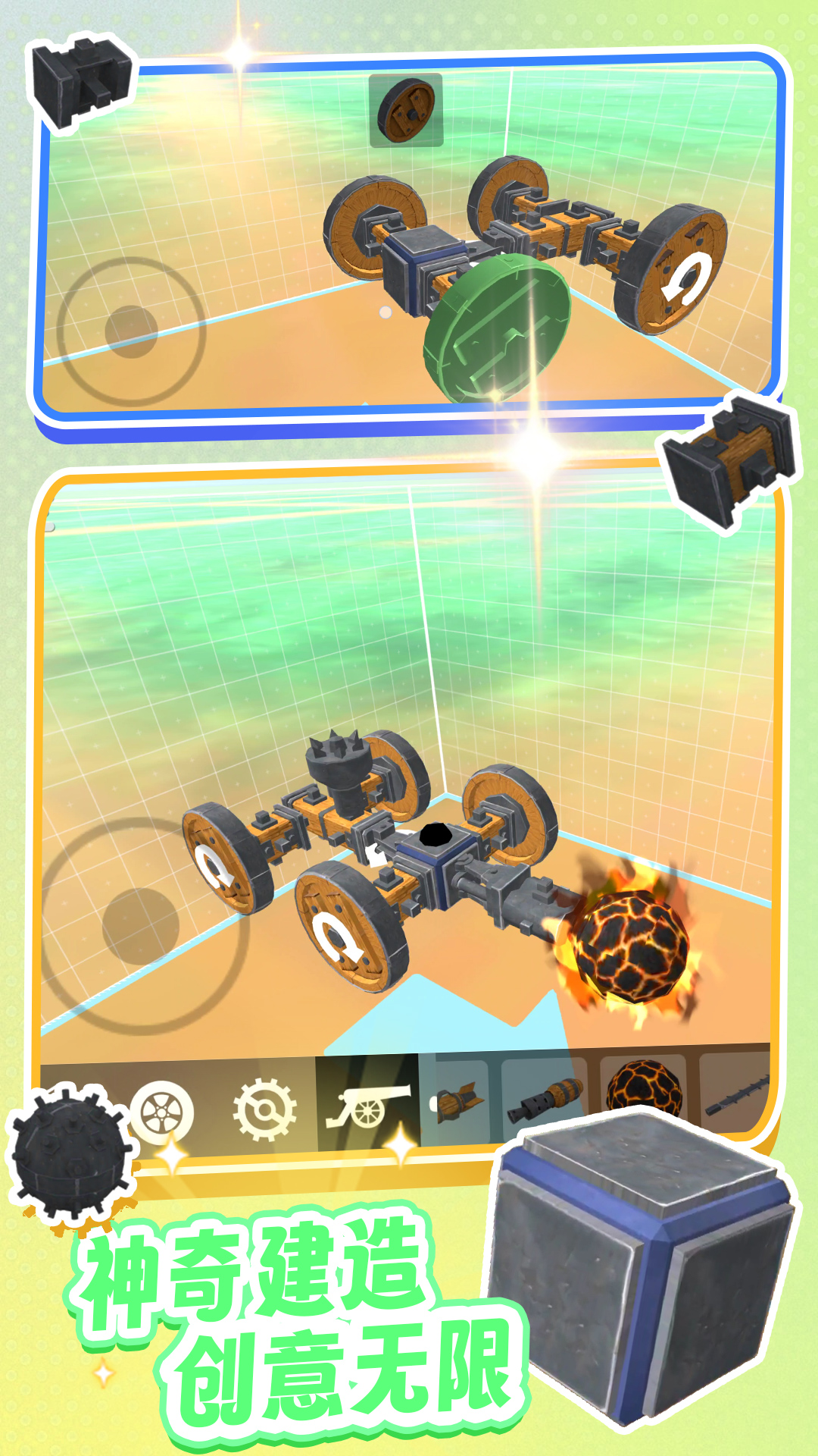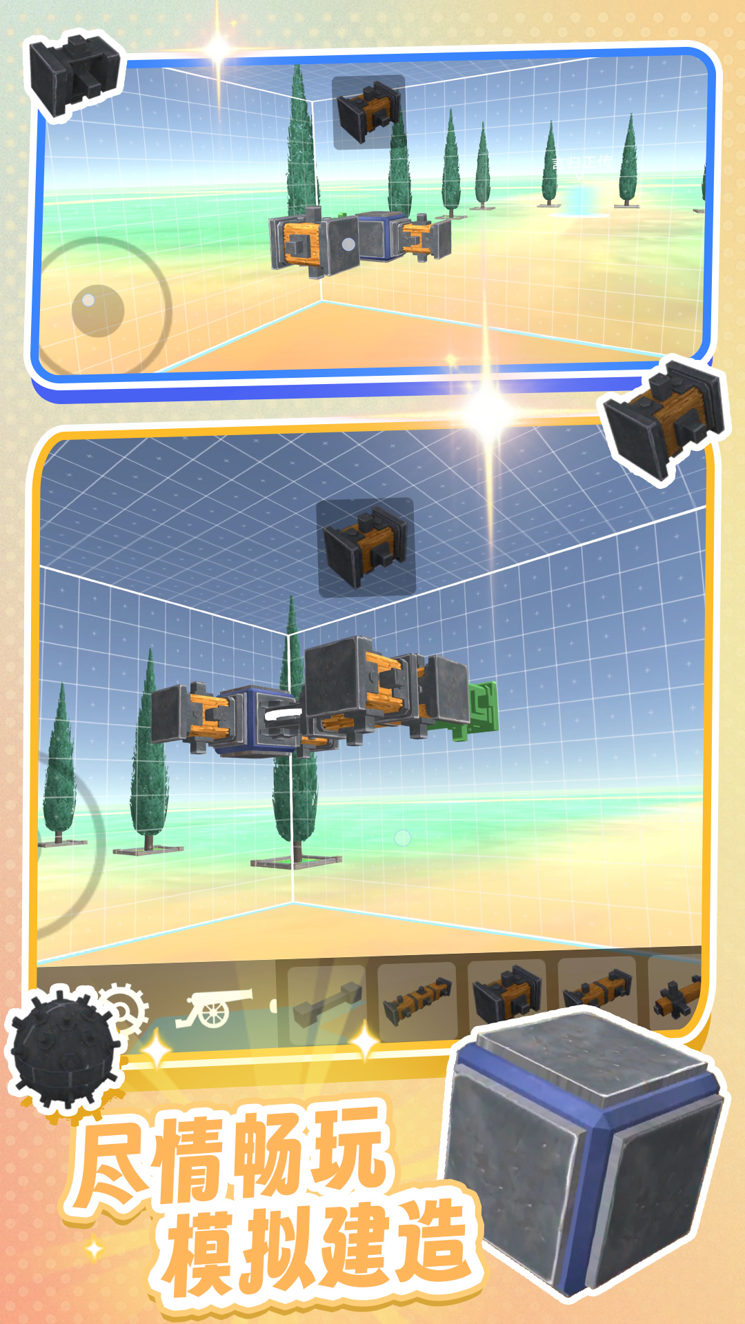 《神奇构建世界》是一款超好玩的自由构建模拟小游戏,在游戏中有许许多多不同的组件,需要发挥你的超强想象力打造属于你自己的专属座驾,超多组合,酷炫载具等你来挑战