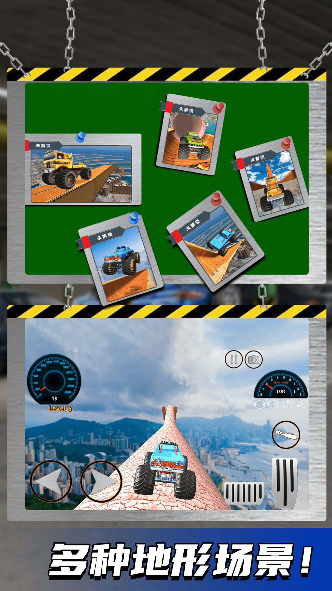 特技技巧:在特技闯关模式中,你需要通过执行各种特技来完成关卡目标。例如,进行飞跃、漂移、倒立行驶、顶部穿越和火焰喷射等。掌握不同的特技技巧对于通过关卡和获得高分至关重要。