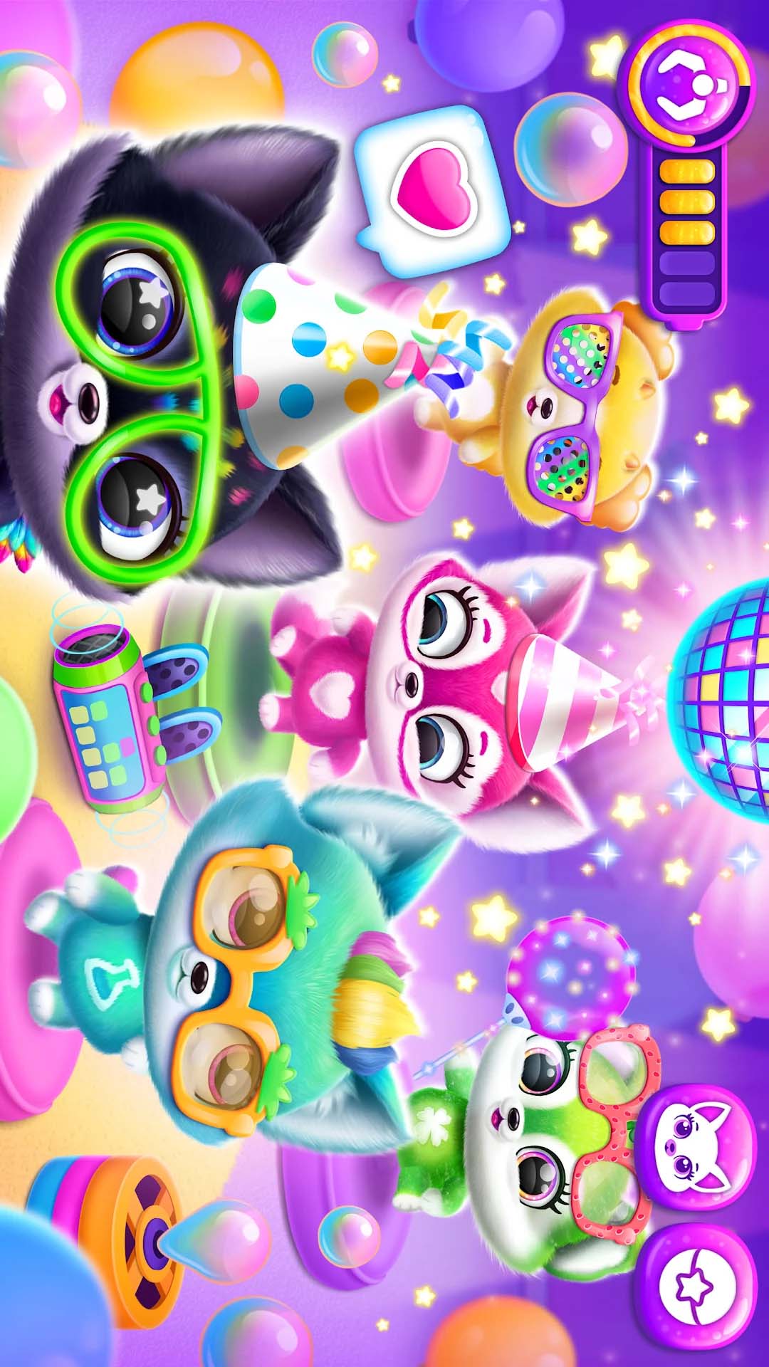 收集完所有萌宠 后,是时候举行盛大的庆祝活动了!想象一下:虚拟气球、泡泡、蓬松的云朵、闪闪发光的迪斯科球和欢快的音乐营造出完美的氛围!每只可爱的毛茸茸宠物看起来都那么喜庆——是时候享受乐趣了!