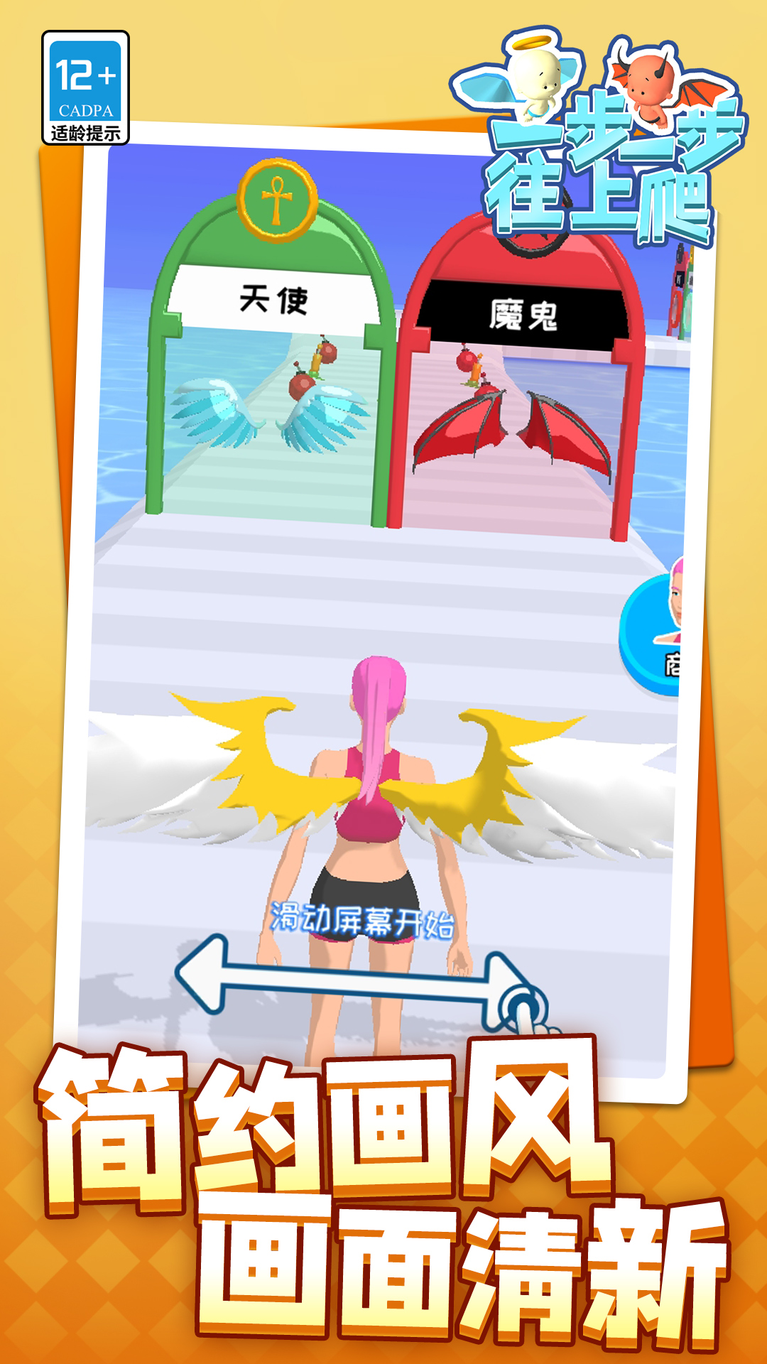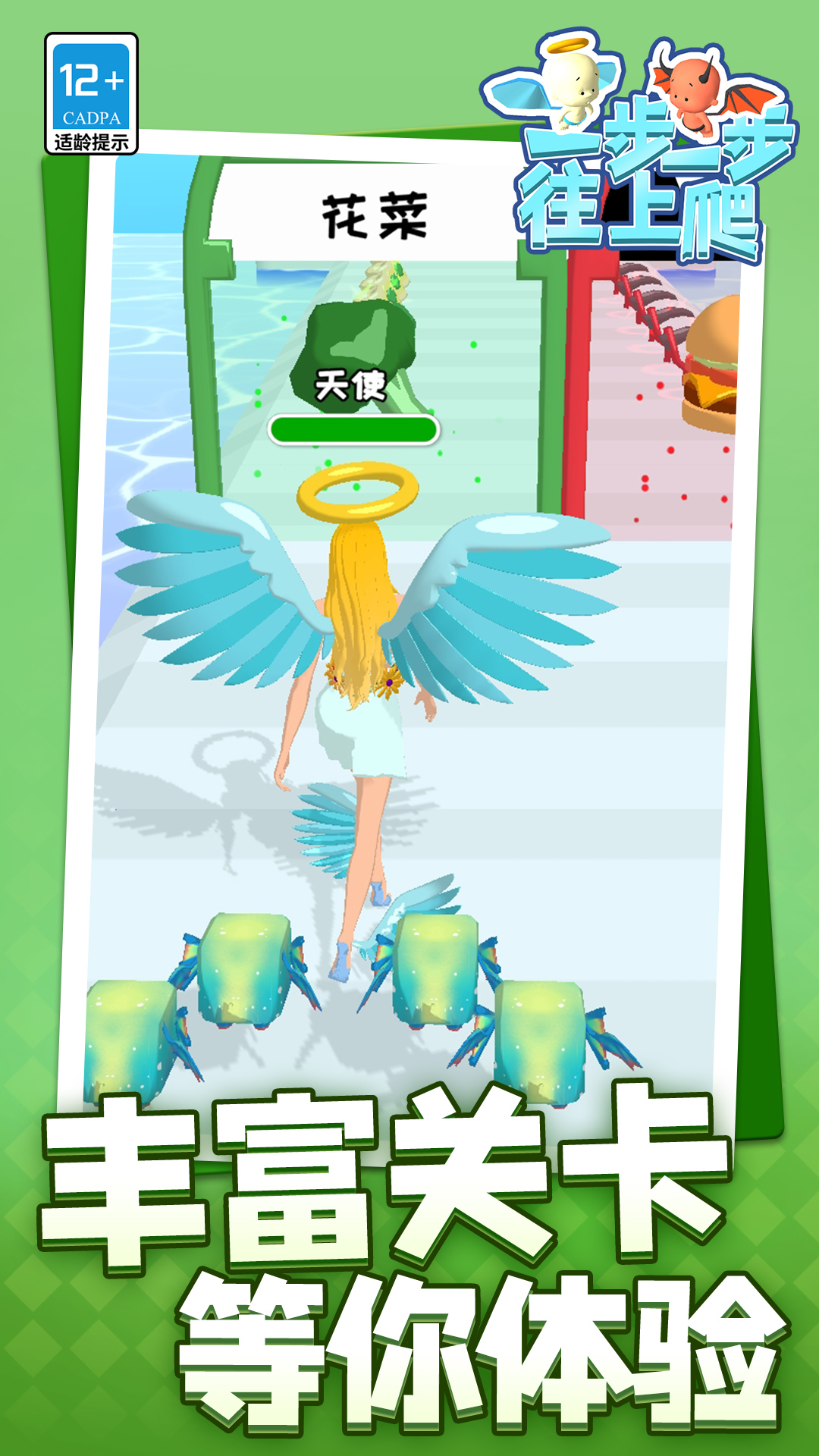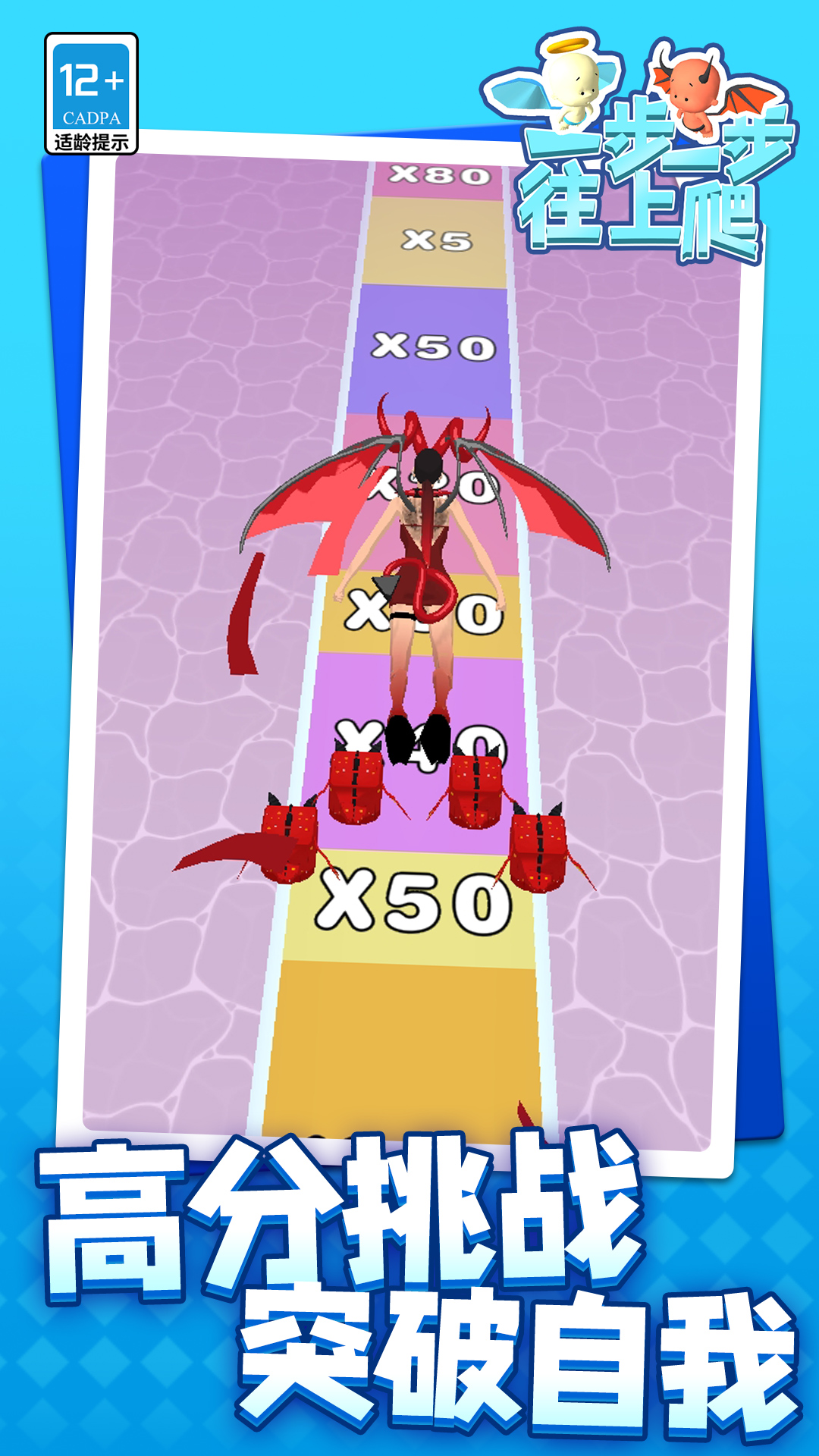 《一步一步往上爬》是一款跑酷闯关游戏,玩家将在各个场景中跑酷,需要及时躲避道路上的各种障碍物和陷阱,收集一路上的各种道具。玩家还可以在游戏中变成天使或者恶魔,游戏中有各种陷阱困难,你可以变换形态去解决这些困难。在这里不断的开启适合自己的模式,丰富的玩法也会带给你不一样的精彩,赶紧下载体验一下吧。