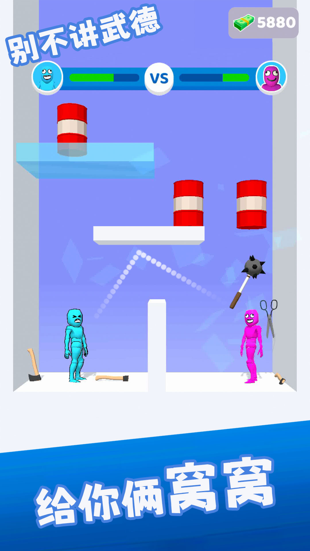 游戏的规则很简单,看谁以一种有趣的方式让对方先挂掉,就会赢得闯关胜利。