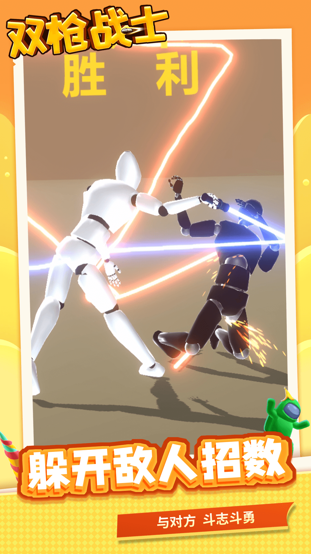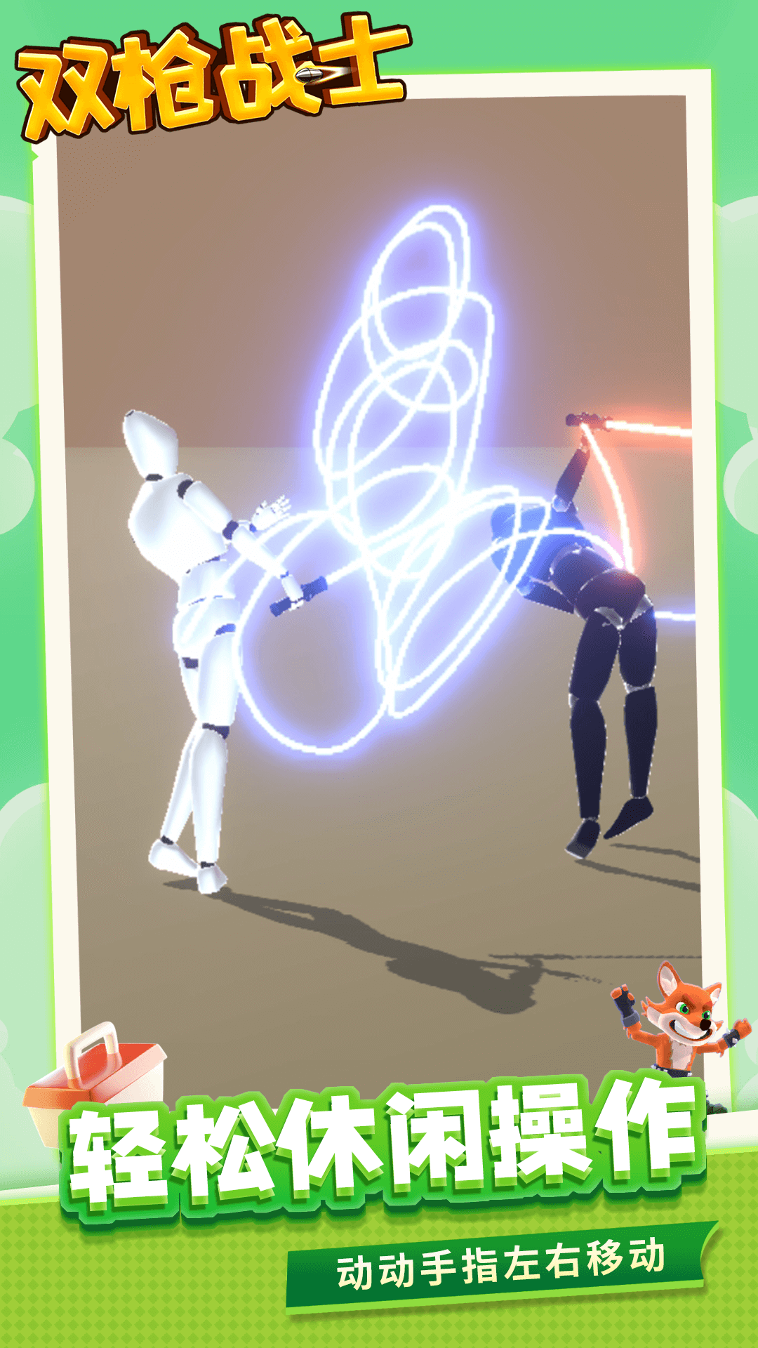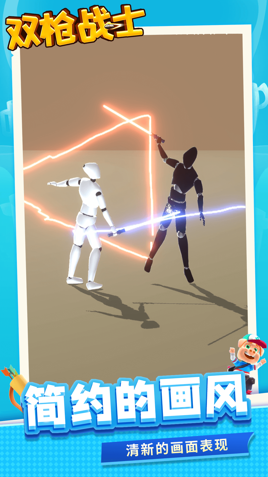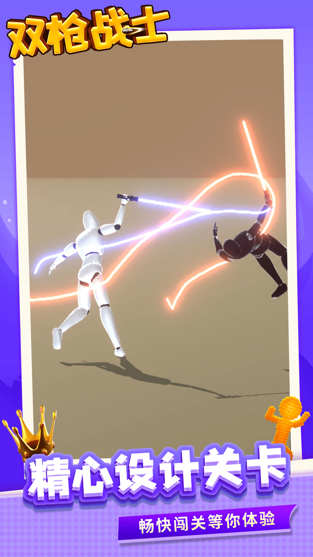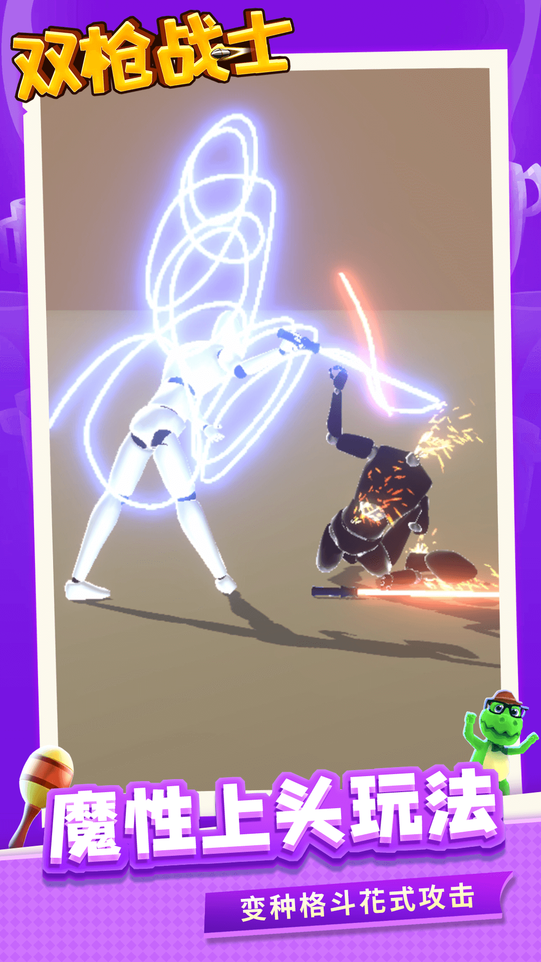 《双枪战士》是一款趣味格斗竞技小游戏,玩家需要通过操控角色使用自己的光剑与对手交战,玩家可以随心所欲绘制不同类型的光剑,每个光剑的威力都非常强,只要熟练使用这些光剑,就能轻松击败对手,迎战更加强大的对手,每个人物都有不同的攻击手段,有的可以释放火焰,有的可以释放闪电,给玩家带来爽快刺激的光剑战斗体验。