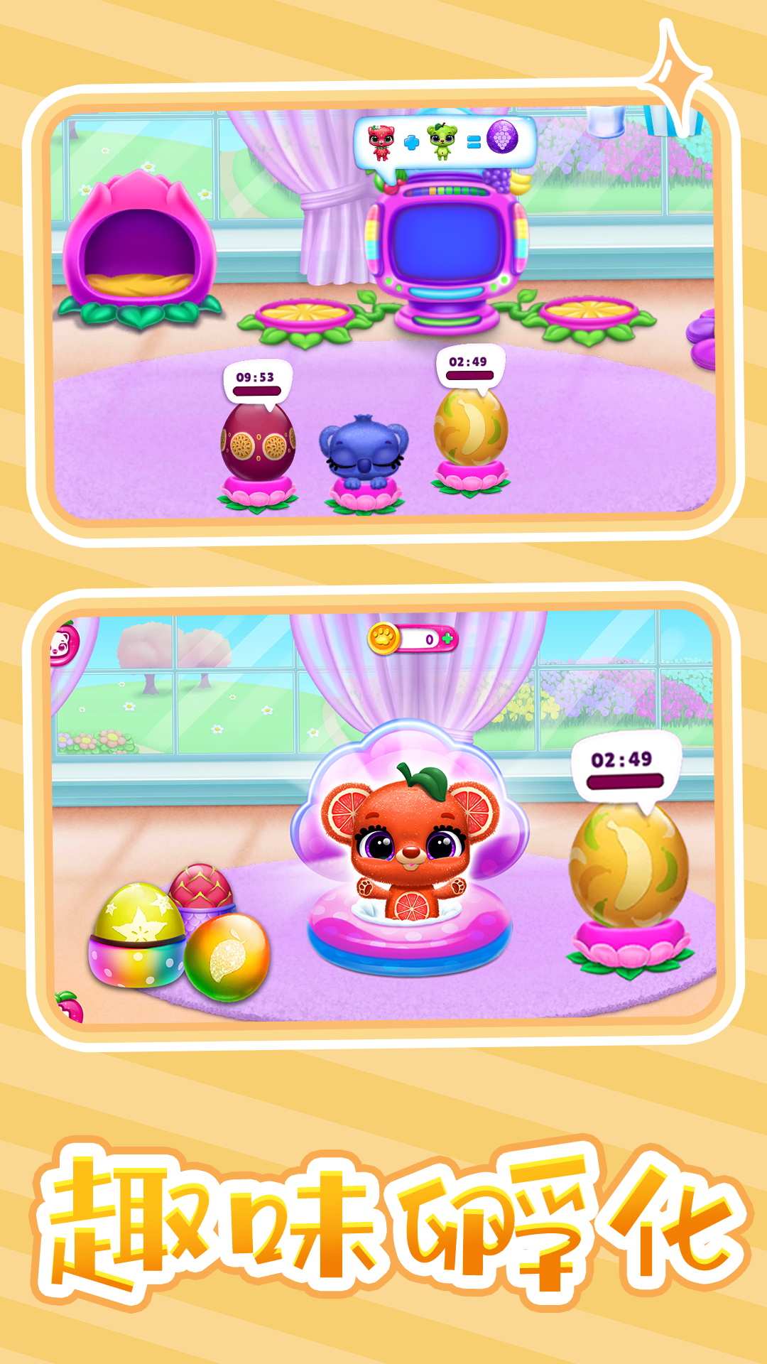 你知道吗?这些小可爱是从蛋里孵出来的哦!只要将两只可爱宠物放进魔力融合机里,就可以得到一颗新的宠物蛋。接下来只要等着它孵化就好啦。每只小小的生命,都是一个大大的惊喜!