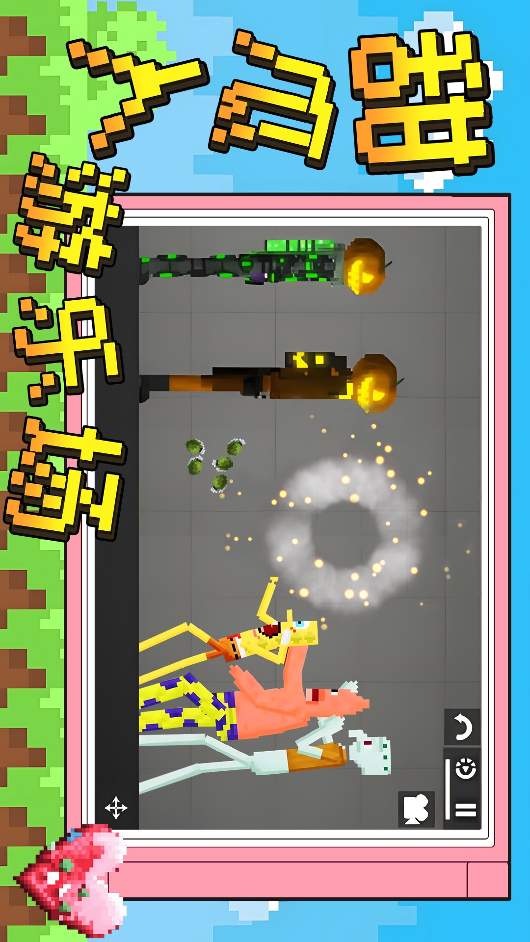 控制你的角色尽情冒险,不断尝试各种道具,创造独属于你的甜瓜游乐场!