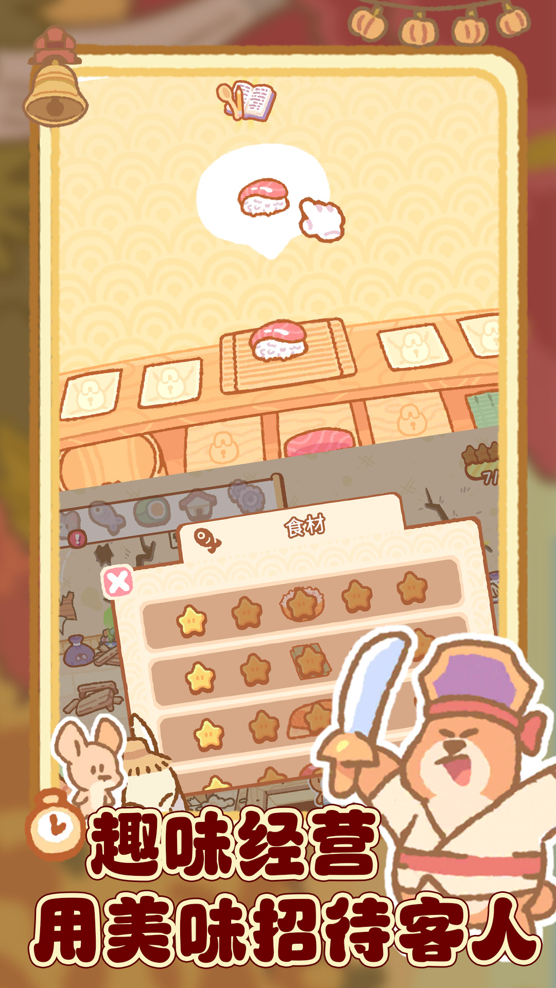 欢迎来到新开的小熊寿司吧!化身为小巧可爱的熊木,继承家族产业,开启一段探索寿司手艺传统秘诀的趣味之旅!