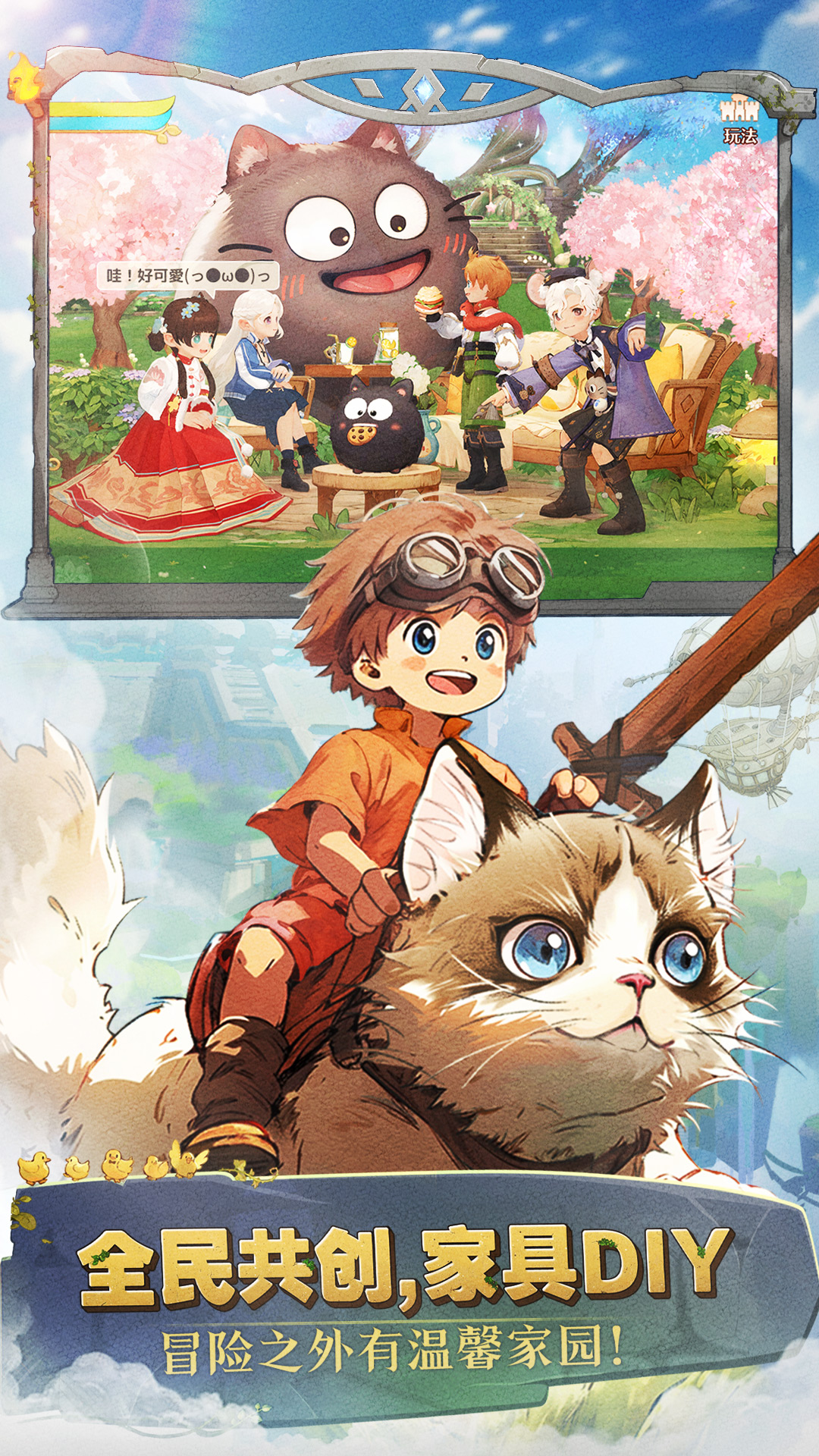 冒险之余也别忘了好好生活,与好友一起DIY家具装扮温馨家园,去偶遇世界各地的冒险家,彼此分享故事与珍宝,撰写你独特的冒险童话!