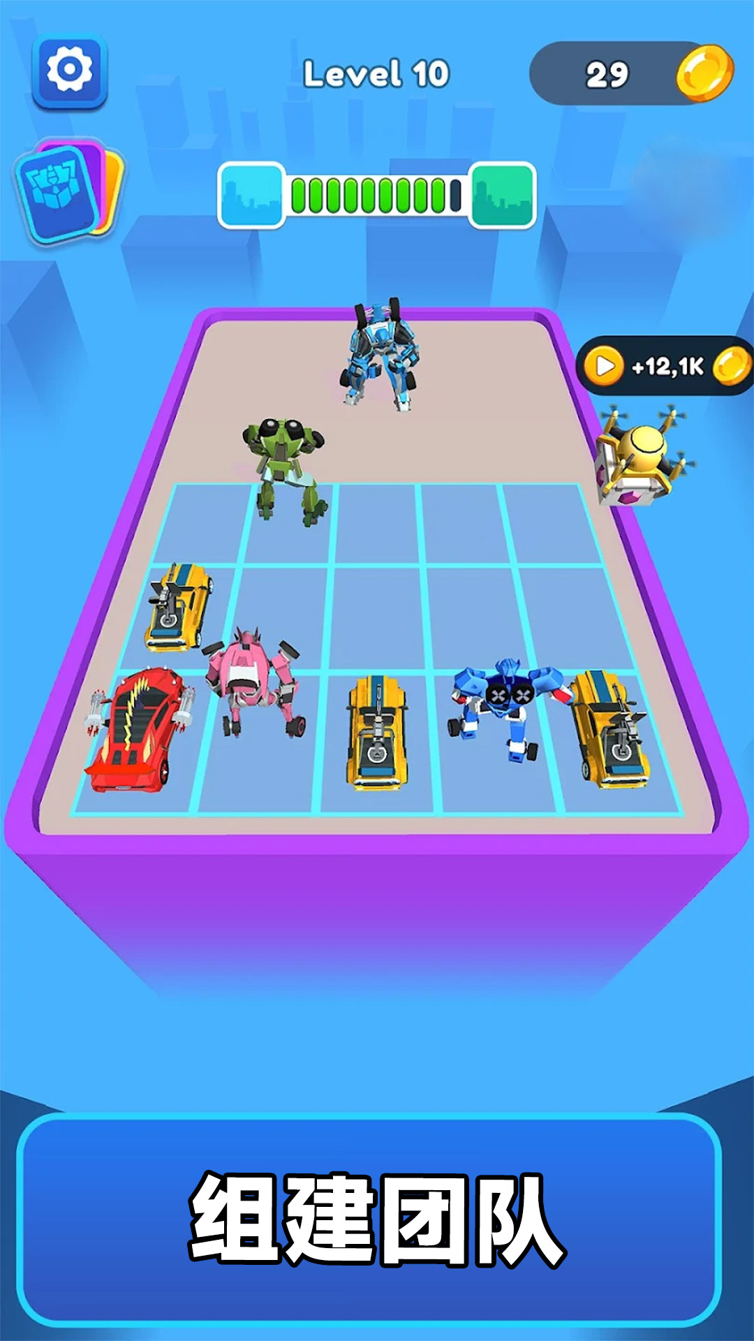 一款极具吸引力的合并类游戏。在游戏中,将汽车和机器人合并,创建一个强大的团队并与敌人战斗。游戏拥有精美画面和畅爽的玩法,你将必须运用技能,展示思维,成为充满挑战的战场上的终极超级英雄。成为游戏中的超级英雄!