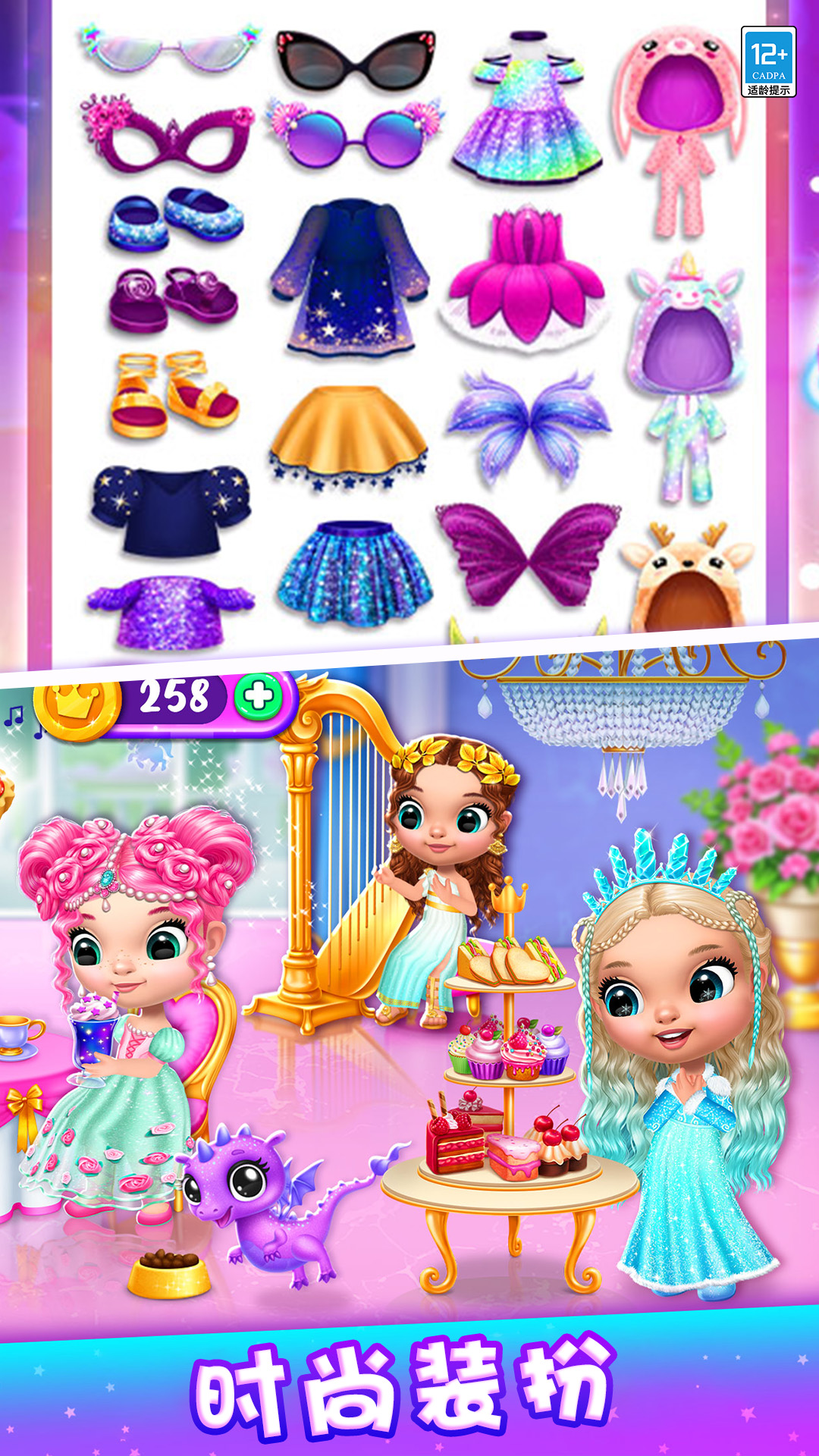 在这个游戏里,你将会拿着属于你的魔杖,一个个唤醒珍贵的公主娃娃,你可以用美味的食物取悦每位魔法公主,也可以用精美的服饰装扮她们,不管是迷人的冰公主还是俏皮的蝴蝶公主,每位公主都有她们闪闪发光的独特品质。在这个奇幻的魔法城堡内,还摆放有各式精美的家具,你可以和她们一起欣赏美丽的落日,也可以一起共饮茶点,你可以在这里尽情享受到公主的待遇。同时每位公主都喜欢创意小游戏,你可以帮助她们一起探索,完成游戏,获得奖励,这些奖励可以让公主们换上更华丽的服饰与妆容,发挥你的创造力,将每一位魔法公主都打造成时尚之星!