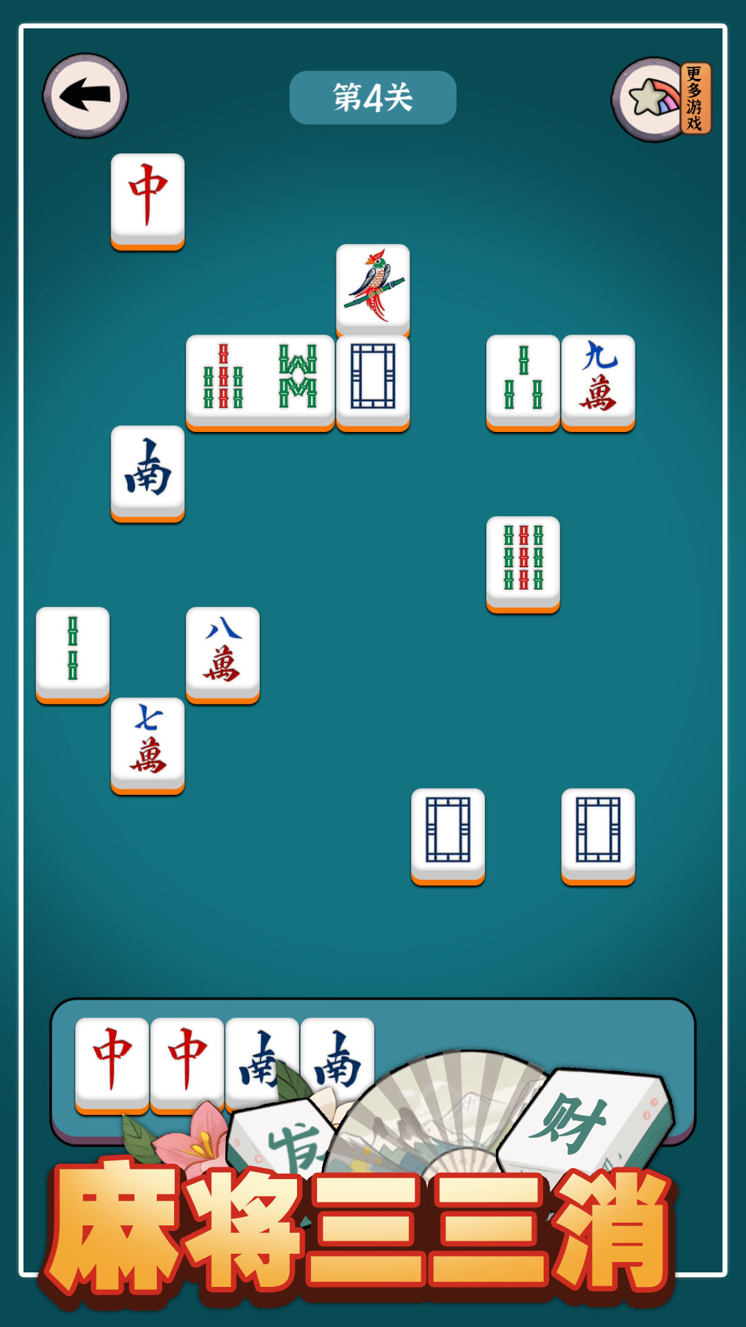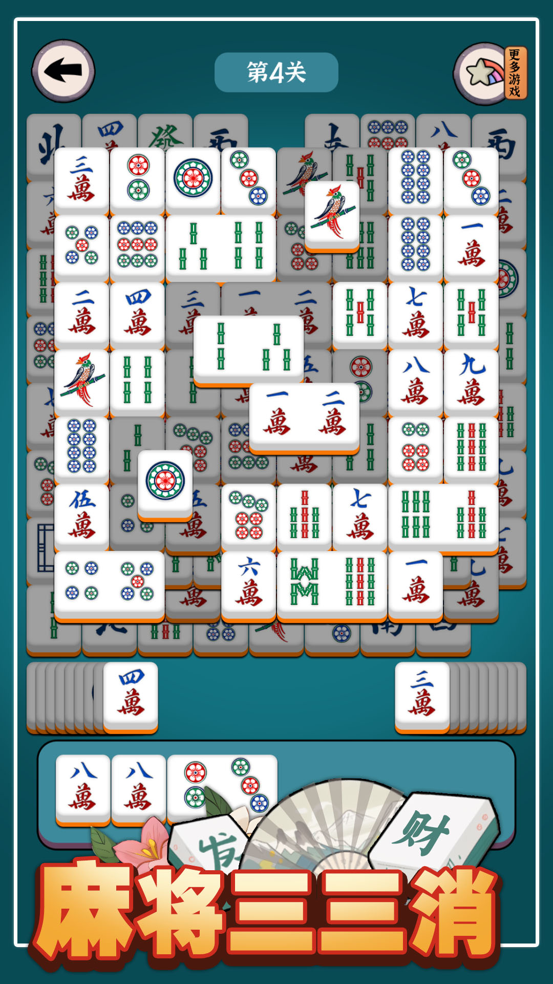 这是一款连接三张麻将或三张相同花色的休闲消除游戏,游戏中玩家将桌面上的牌三三消除,全部消除即可过关,游戏休闲有趣快来试试看吧。
