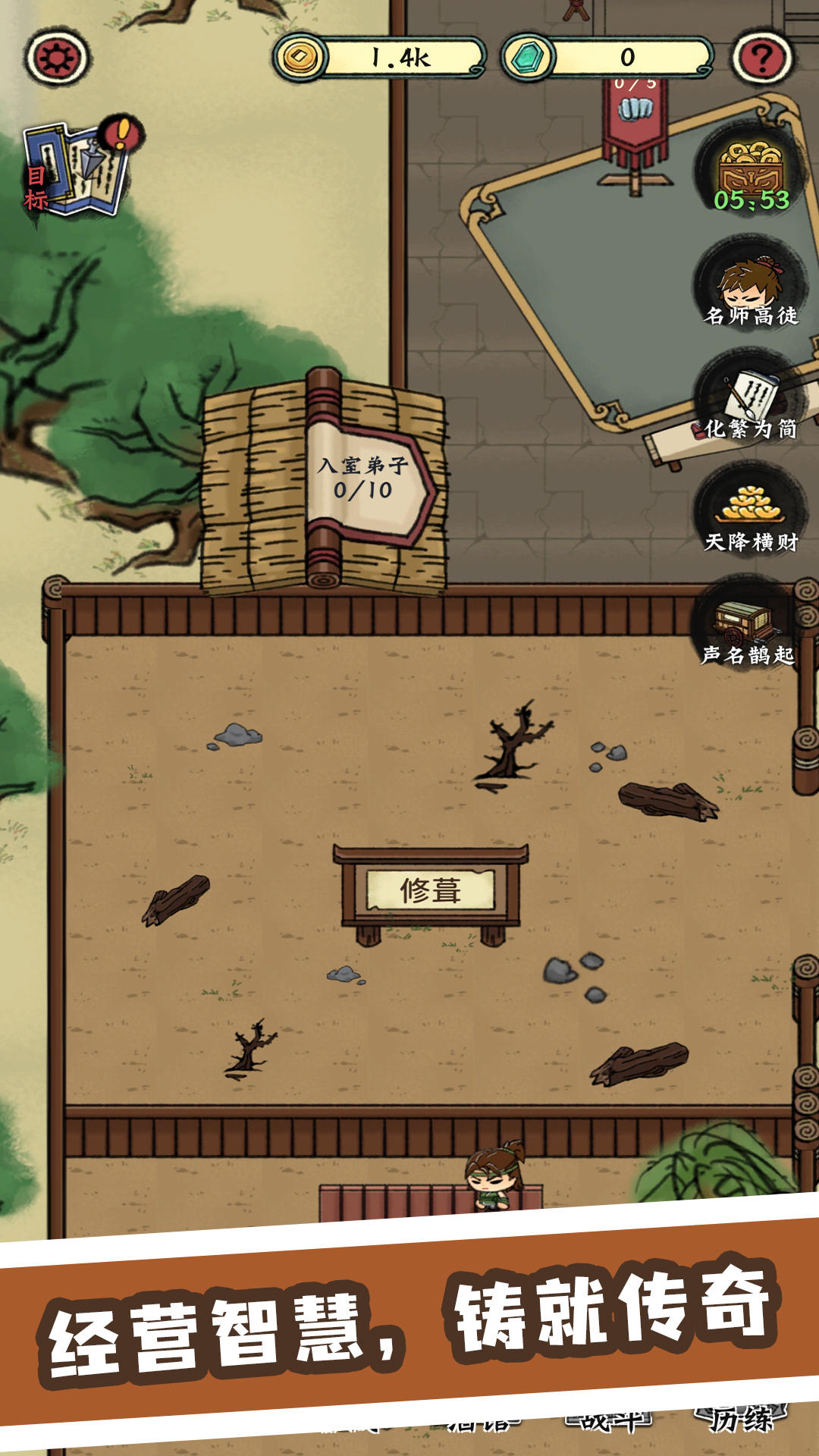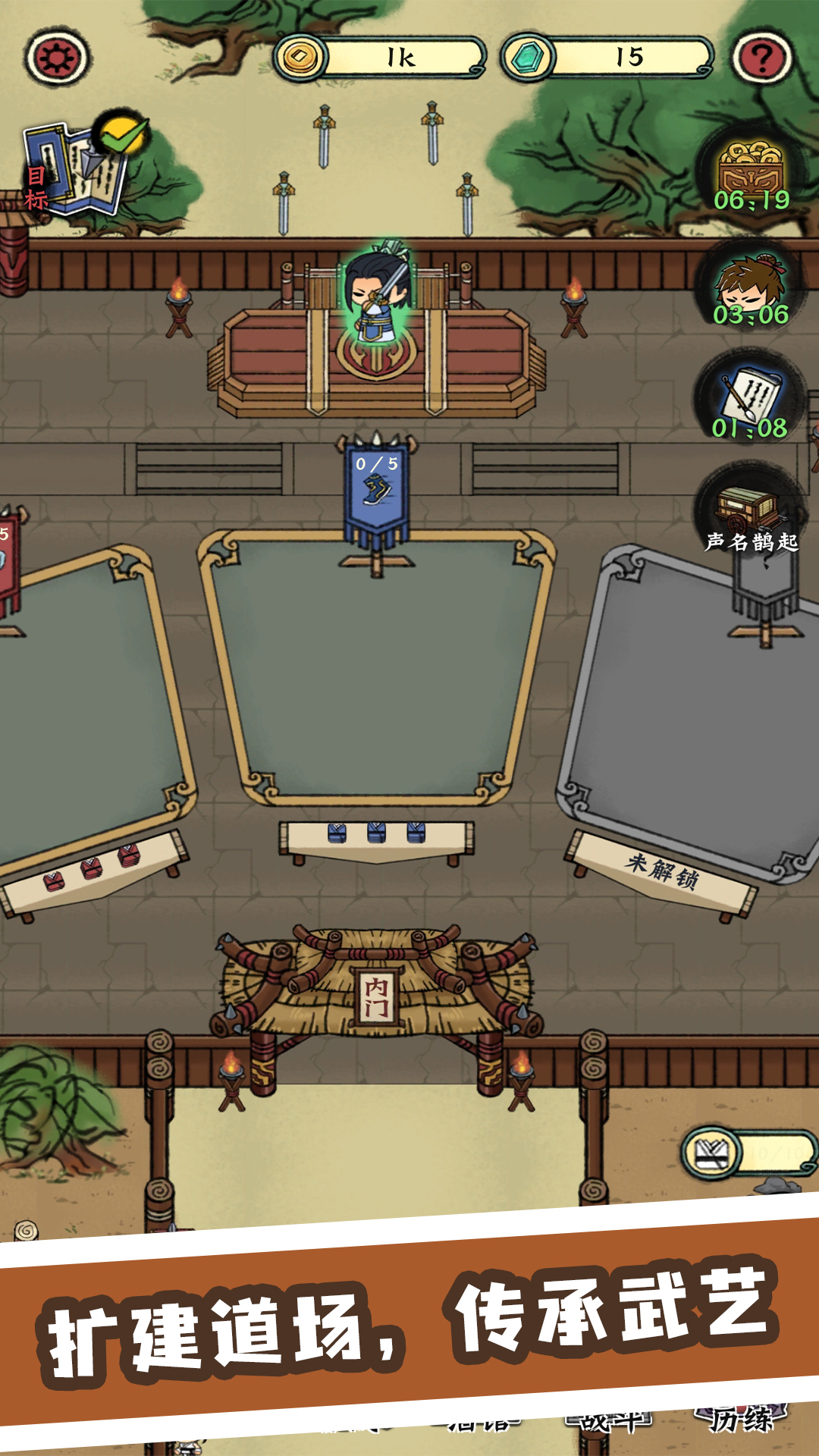 在这款经营类游戏中,玩家扮演一位武术师傅,回到故乡后发现师父因债务问题将武馆抵押。玩家决定接手武馆,与师妹一同努力,重新打造并发展武馆。游戏过程中,玩家将招募和培训学徒,扩建场馆,吸引更多弟子,通过智慧和努力,重振武馆的辉煌。这是一个关于坚持、传承和成长的故事,玩家将在经营和挑战中体验传统武术文化的魅力。