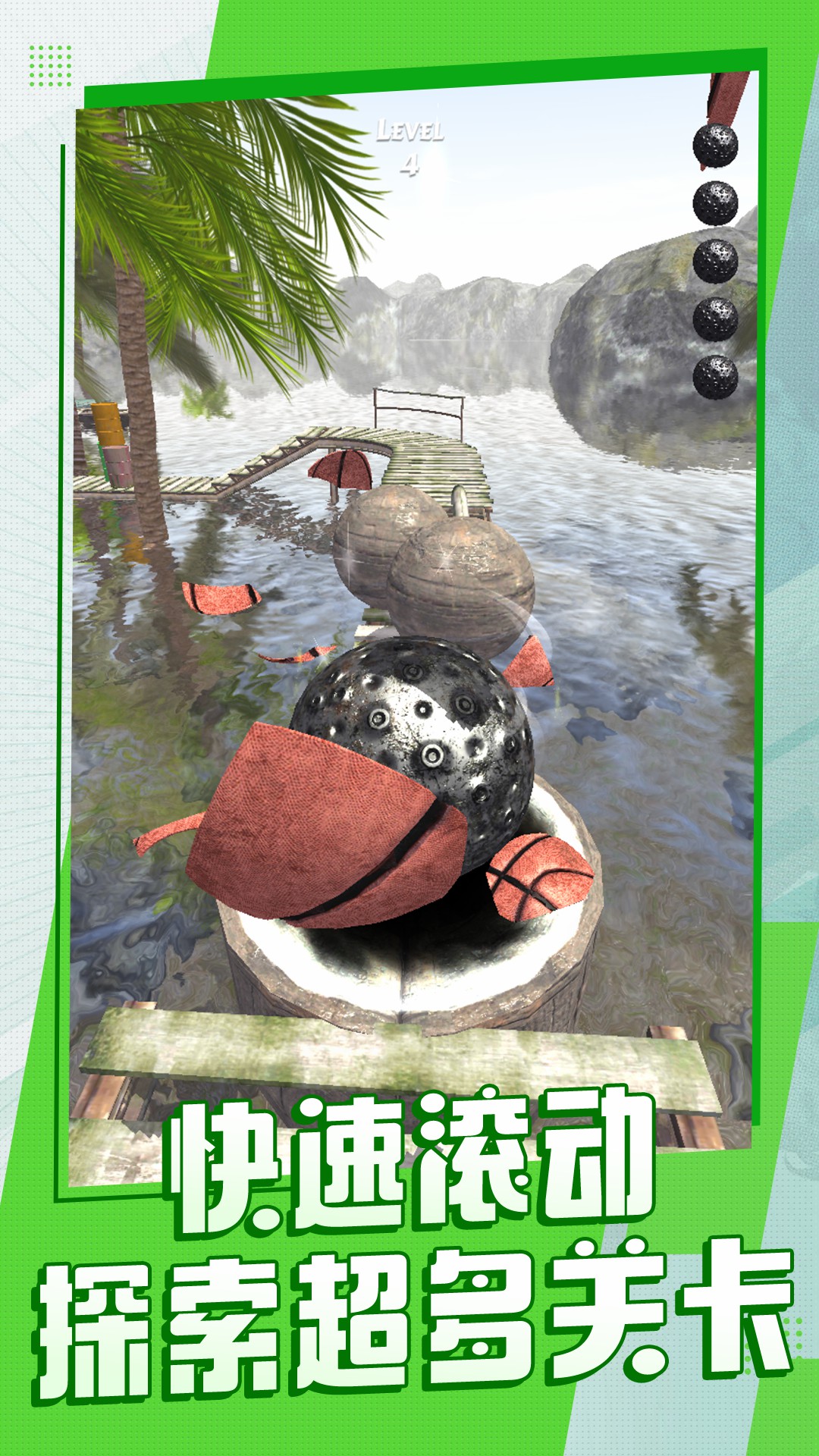《球球大派对》是一款操作简单,但是超有难度的休闲游戏,玩家控制一个大铁球,滚动在细小狭窄的轨道上,稍有不慎,就会掉落水池。