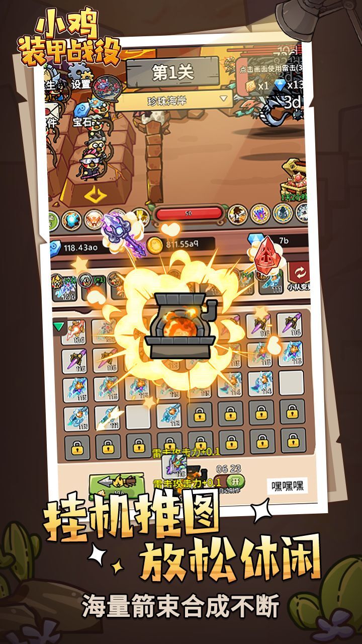 小鸡装甲战役是一款休闲益智,挂机,通关,卡通游戏