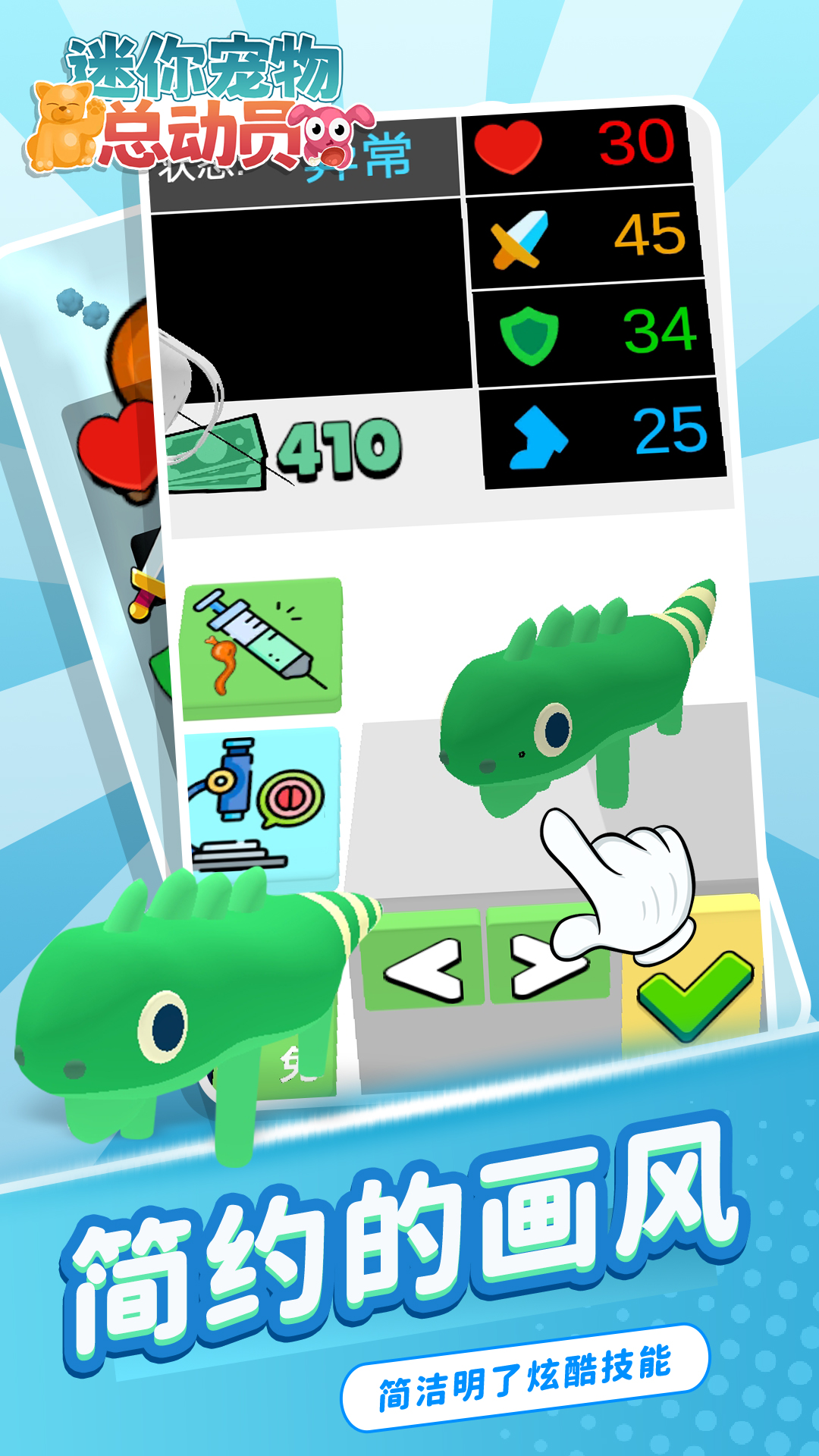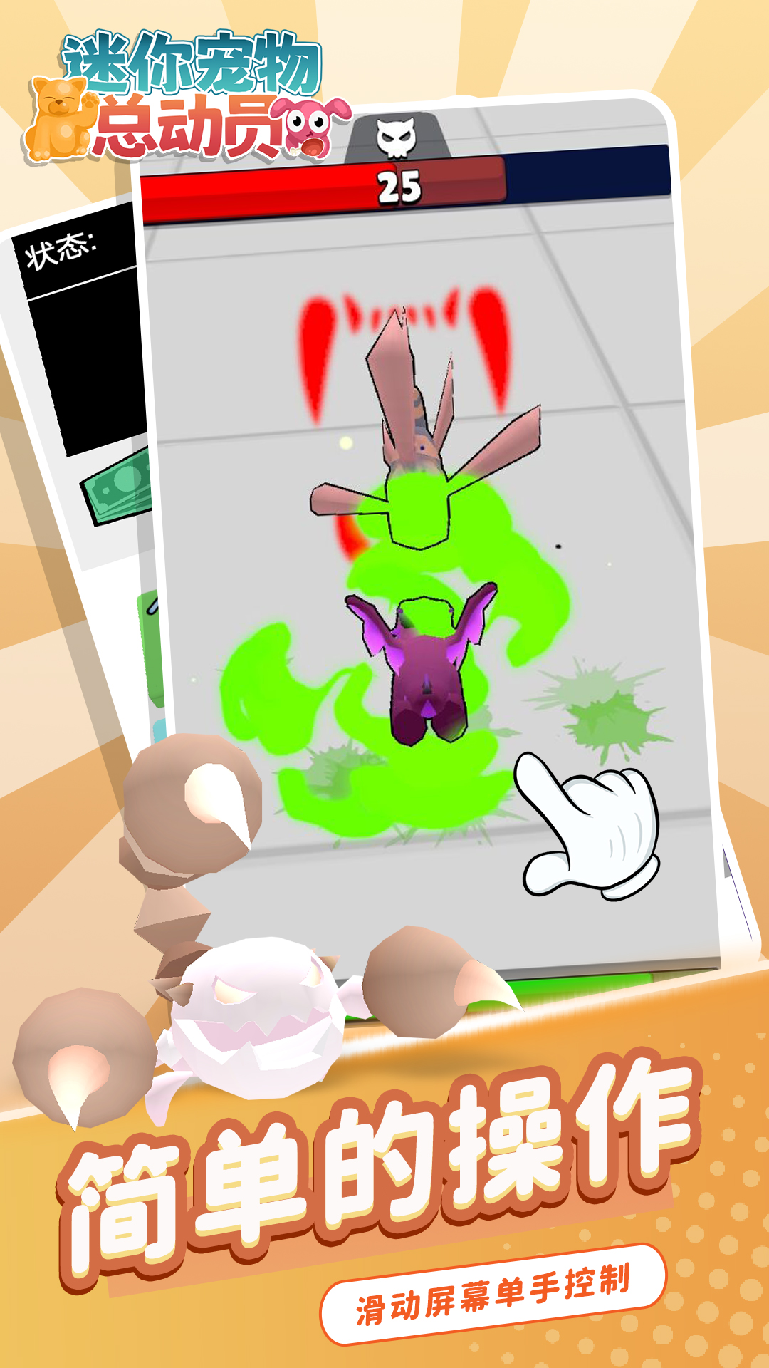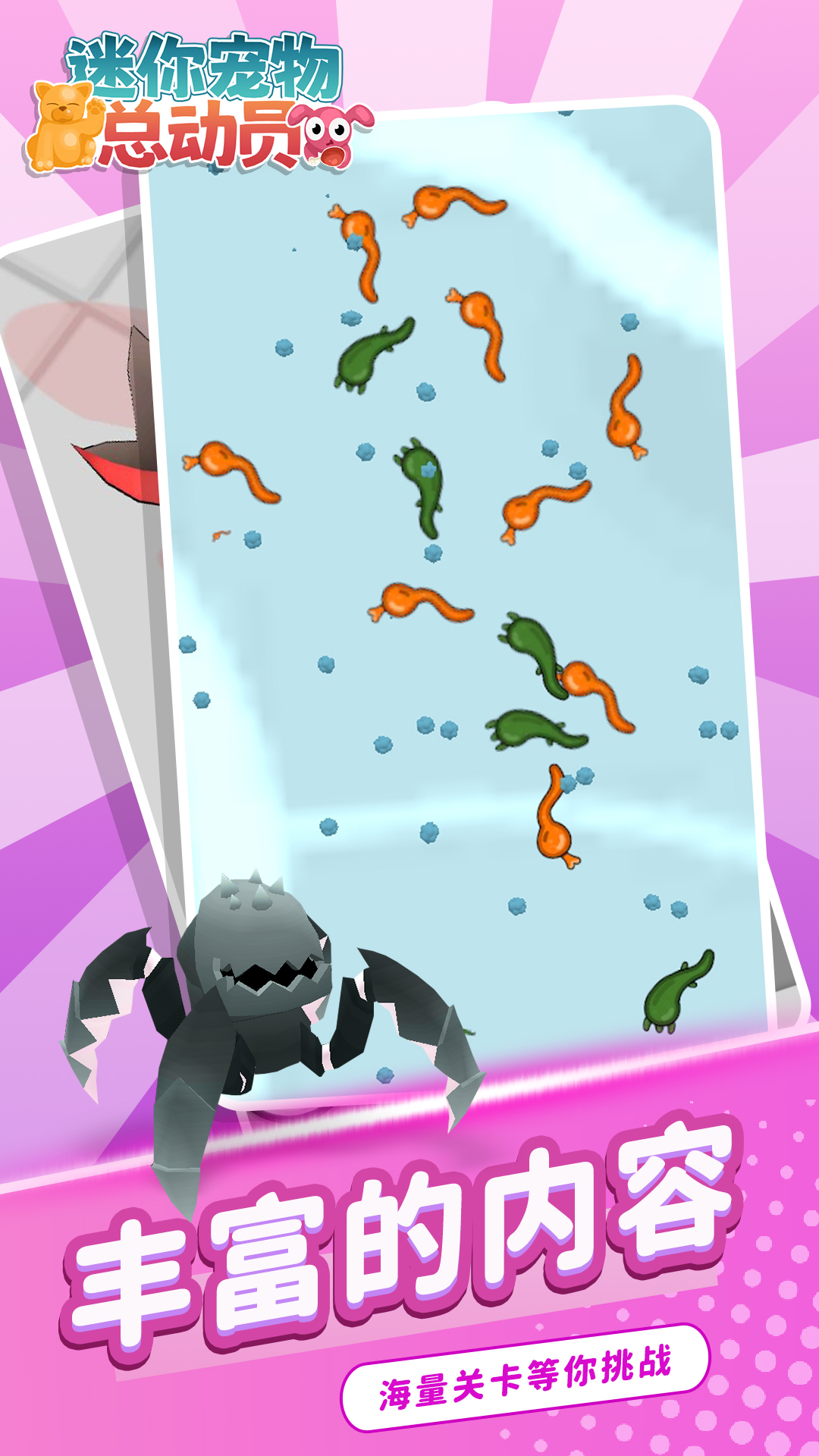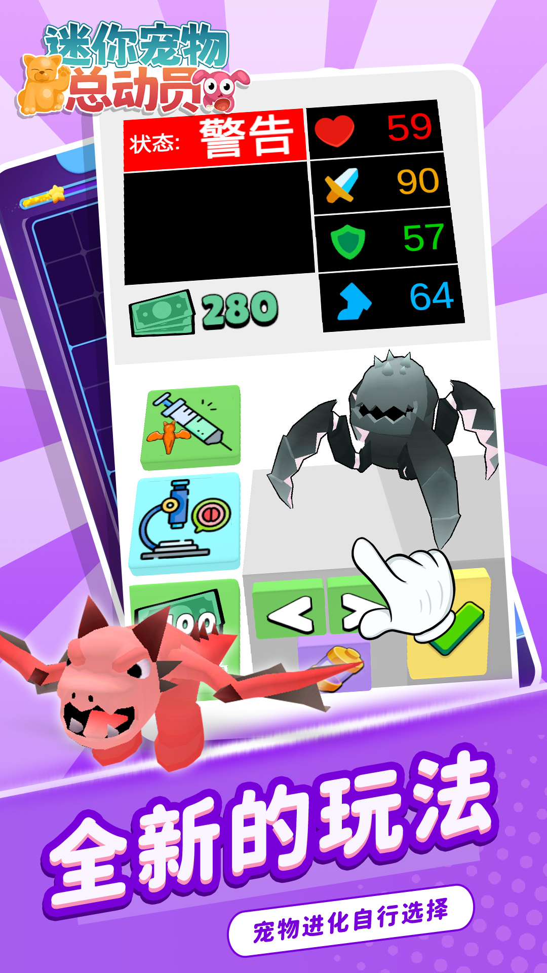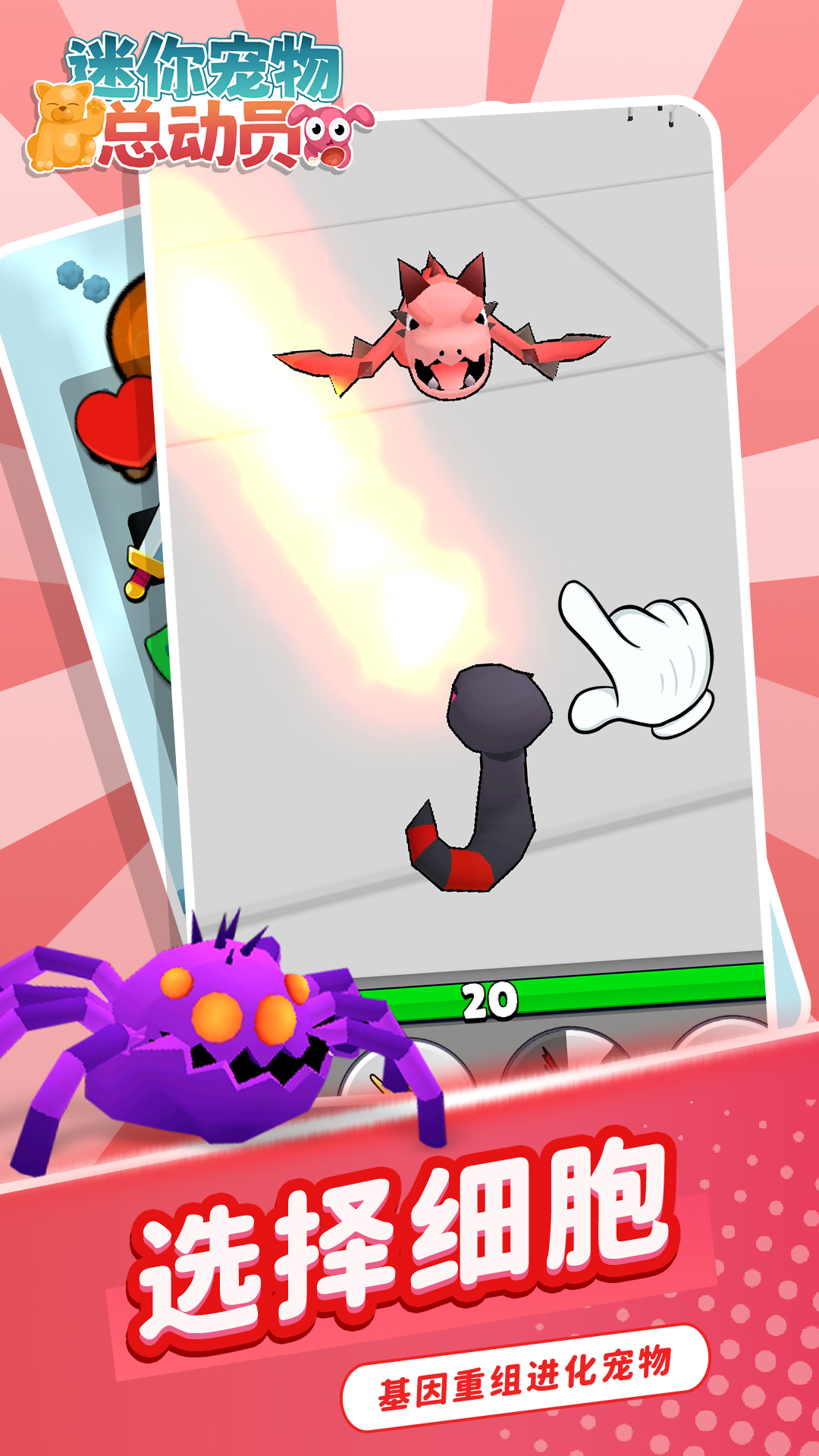 《迷你宠物总动员》是一款休闲模拟闯关类游戏。玩家通过出合适的细菌并给小宠物注射,改变它们DNA进化变得更强壮,进化后的宠物可以去和更强壮的宠物进行对决。感兴趣的快来体验一下吧!