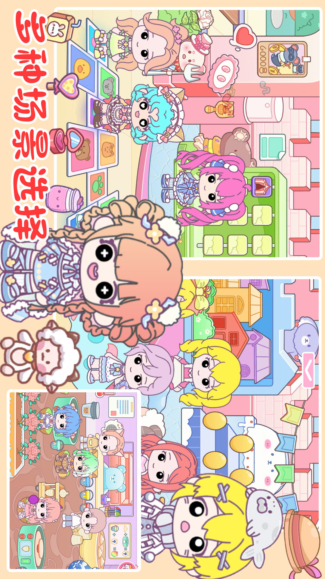 -百种场景:公主城堡、购物中心、游乐园、美装沙龙、水上乐园、度假区(海滩&小岛、观光区)等等......
