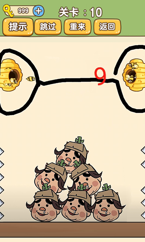 《动脑你最强》是一款脑洞大开画条线圈住蜜蜂救人的轻松休闲小游戏,里面包含海量烧脑关卡,每一关,都有一个小老弟等着你开动思维来拯救他!开动你的脑筋,通过画线来拯救被蜜蜂窝困住的小老弟吧!该游戏将会考验你的逆向思维,打破常规意识束缚,让你绞尽脑汁仍然感觉意犹未尽!赶快叫上你的朋友们一起来体验吧~