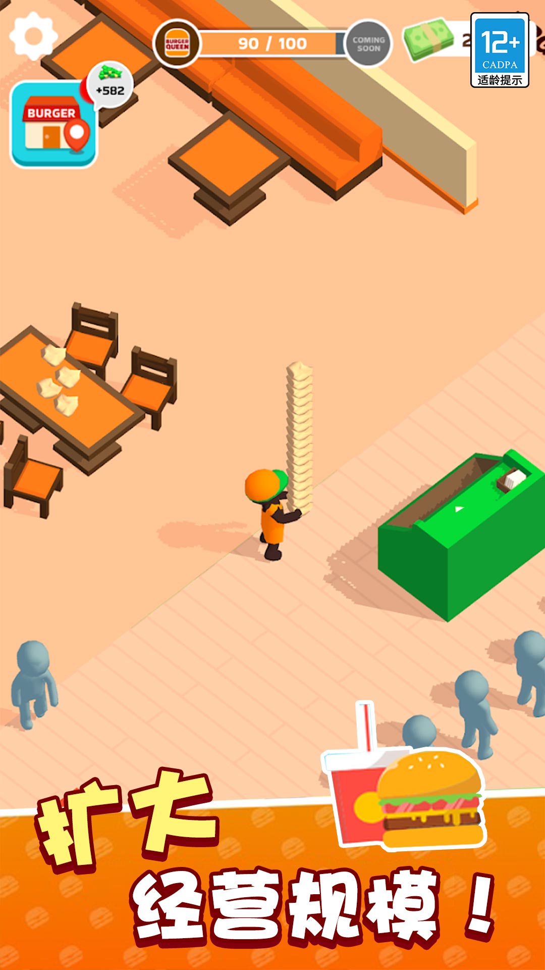 欢迎来到汉堡店模拟游戏《我的快餐店》!在这个游戏中,你将有机会成为自己汉堡连锁店的老板,并且管理你的店铺的各个方面,从招聘员工到扩大你的汉堡店。你的目标是发展你的汉堡店成为一个繁荣和成功的特许经营各地的企业! 《我的快餐店》是一款简单易上手的模拟游戏,玩家可以在游戏中扮演一个快餐店老板,经营自己的汉堡店,并且在各地开设连锁店。 在这个游戏中,你将开始你的创业之旅。你需要从基础的开始,招聘员工、购买设备、准备食材、接待顾客等等。你的店铺有两个销售窗口,一个是在柜台点餐,另一个是在汽车餐厅点餐。你需要确保你的员工能够顺利地为顾客服务,让他们享受到美味的汉堡和优质的服务。