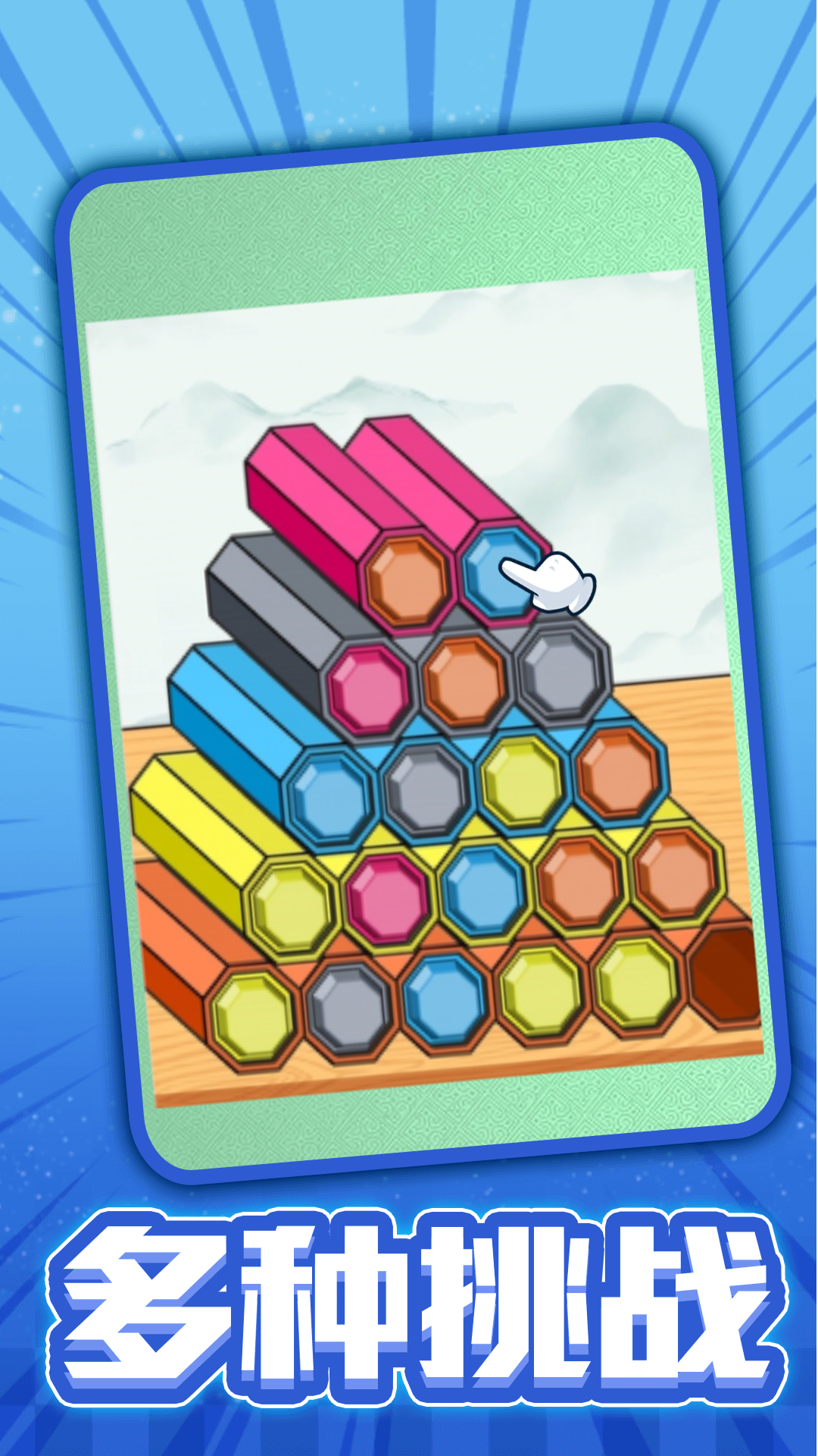 彩笔排序是一款依照笔筒的颜色,在有限的时间内,把笔放到对应的笔筒中的游戏,游戏内含多个关卡,可以尽情的玩!