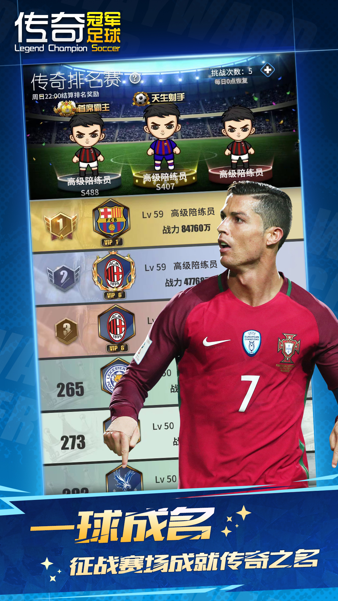 汇聚全球知名球星,率领他们征服绿茵赛场。与好友一同组建豪门俱乐部,争夺冠军荣誉。