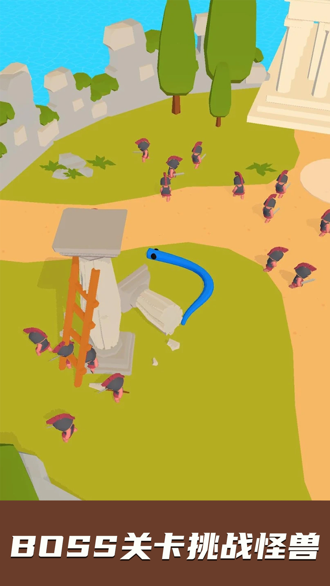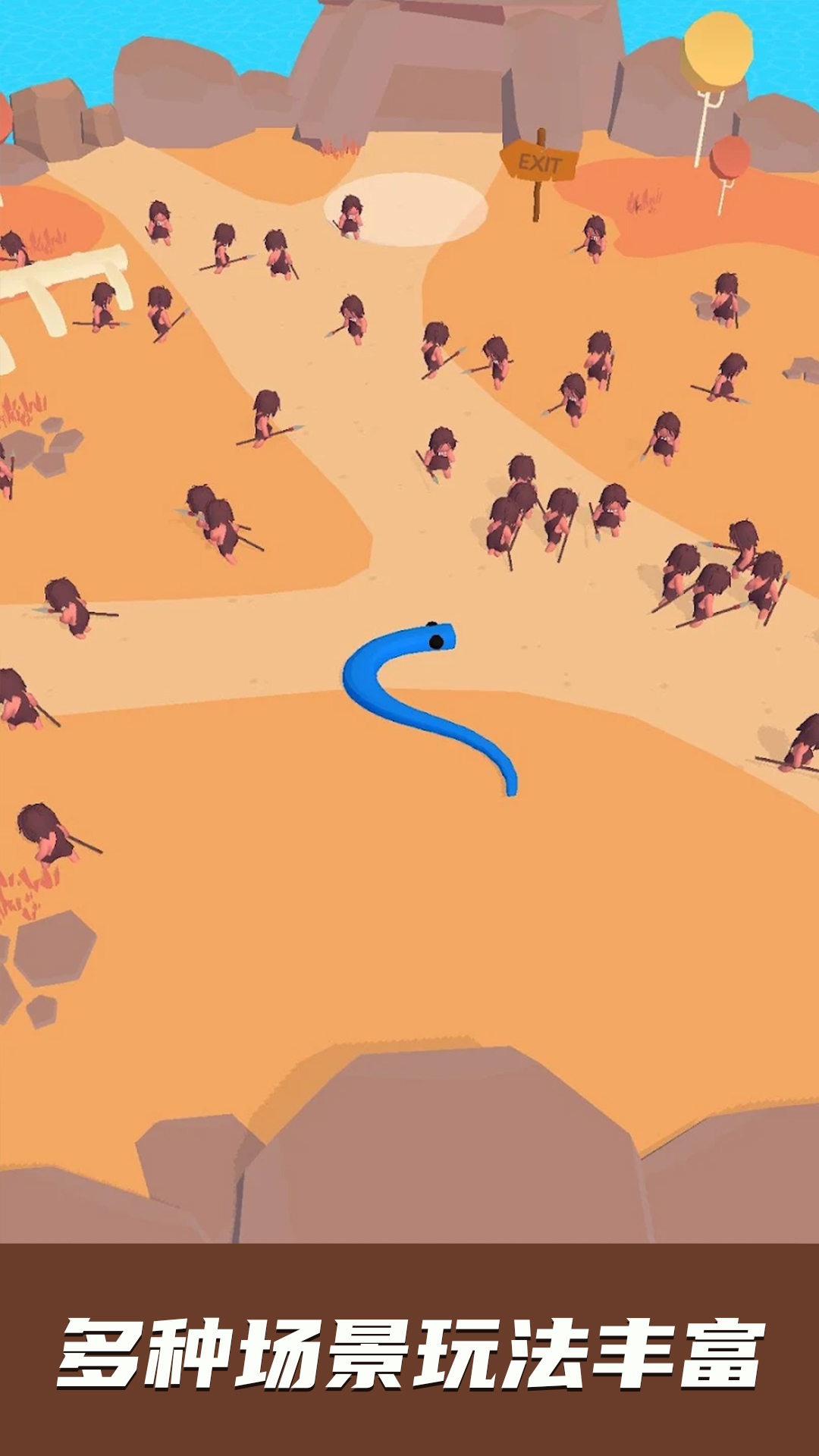 本游戏是一款创意休闲游戏。不同于经典贪吃蛇游戏中吃的玩法,游戏中,玩家指尖控制大蛇的移动,然后用身体圈起包围场地上的火柴人。场地上的火柴人不会停止不动,当大蛇靠近他们时,他们将会四处逃散,所以需要使用技巧抓住火柴人。玩家可以升级大蛇的速度、长度、容量,以便更快抓到火柴人,然后顺利通关。游戏还有合成彩蛋玩法,快来探险吧!