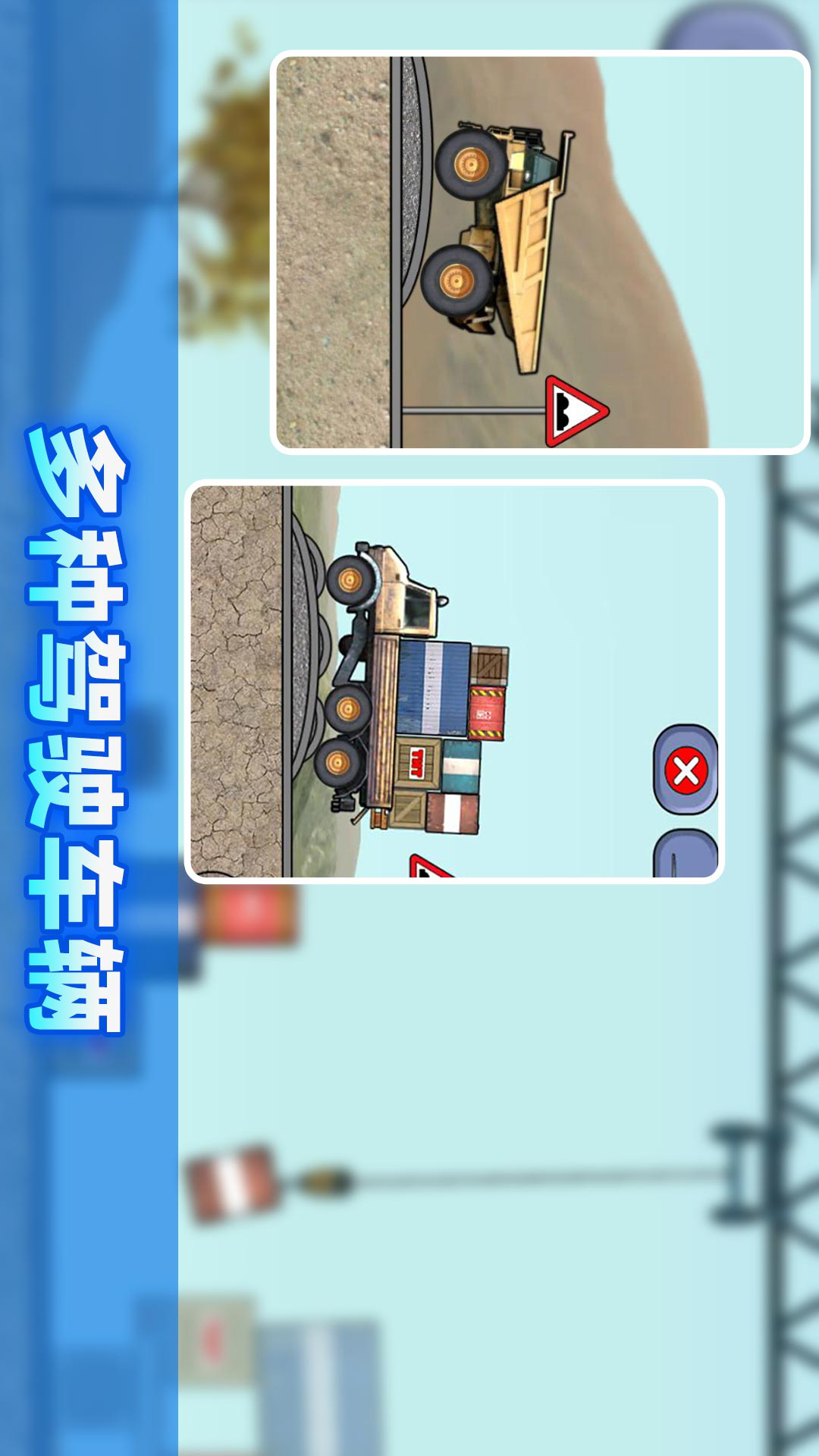 游戏中有九种挑战项目,每一种都有12小关,除了常见的叉车、卡车外,你还可以操作无人机哦!要小心,有的货物是易燃易爆物品,小心不要爆炸!