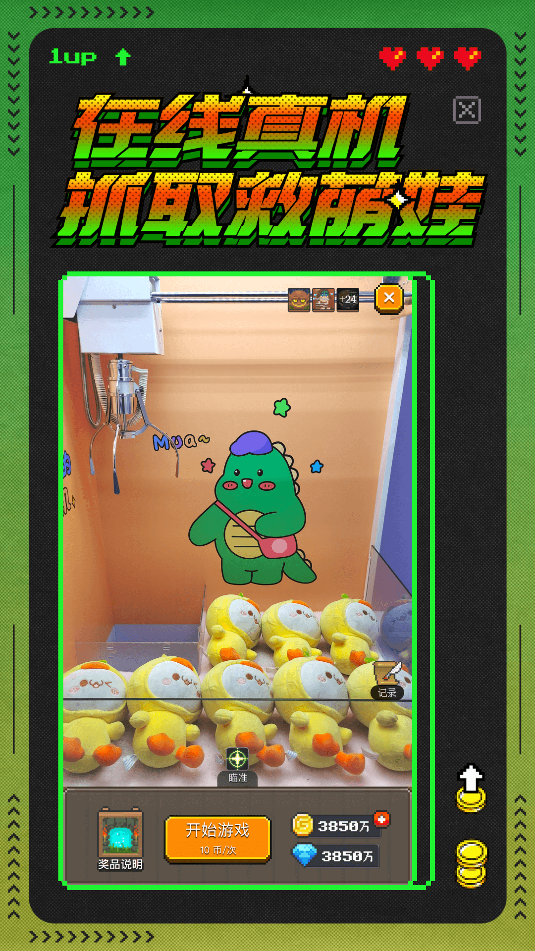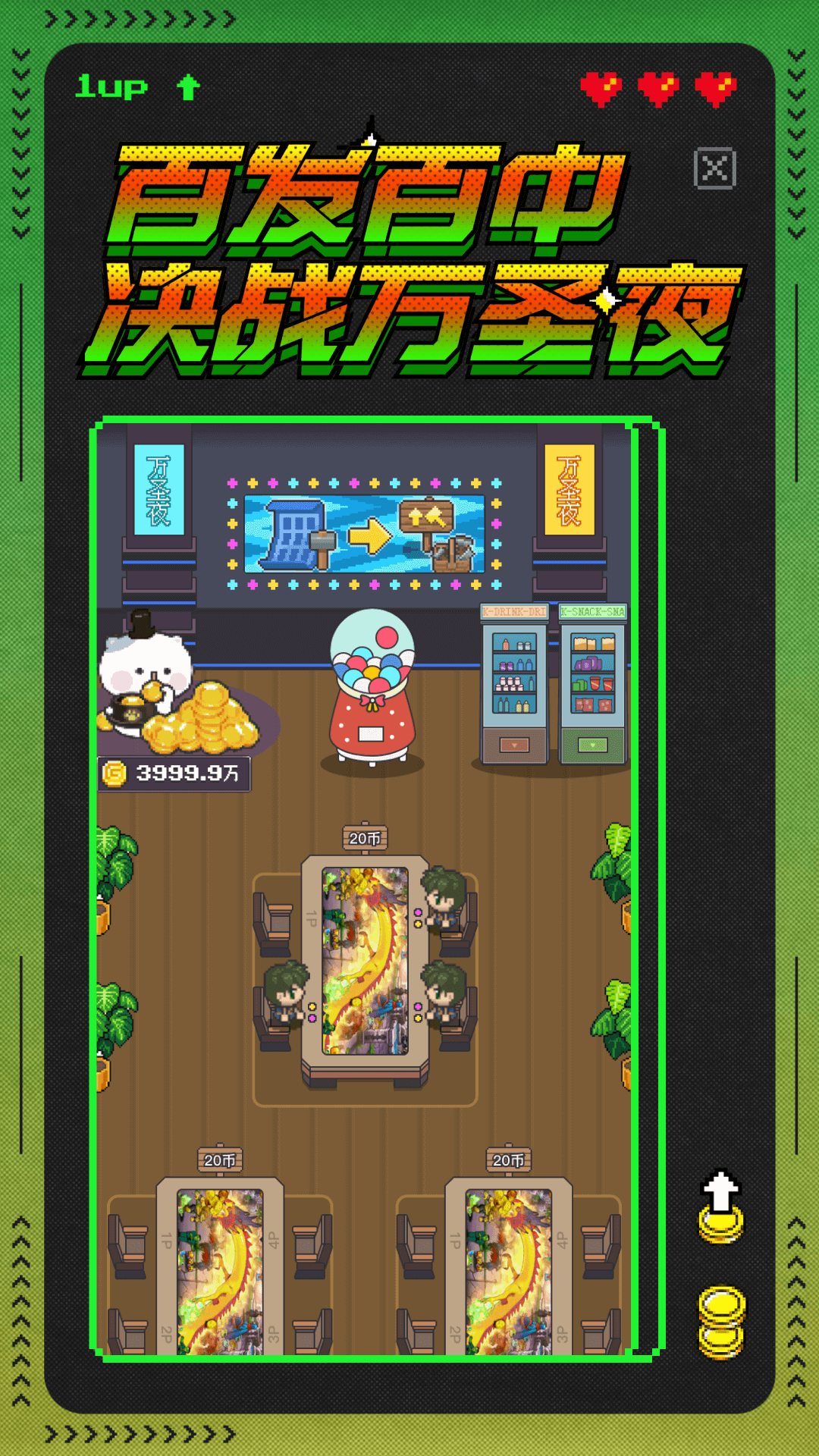 在冒险中你会遇到被困住的萌娃们,可以通过真实全景的线上娃娃机游戏将他们解救出来;还有24小时不打烊、出币率超高的推币机游戏为你的冒险积累财富;万圣夜游戏中你将面对强大的魔王,快来添加火药,一定能百发百中,击败他们!