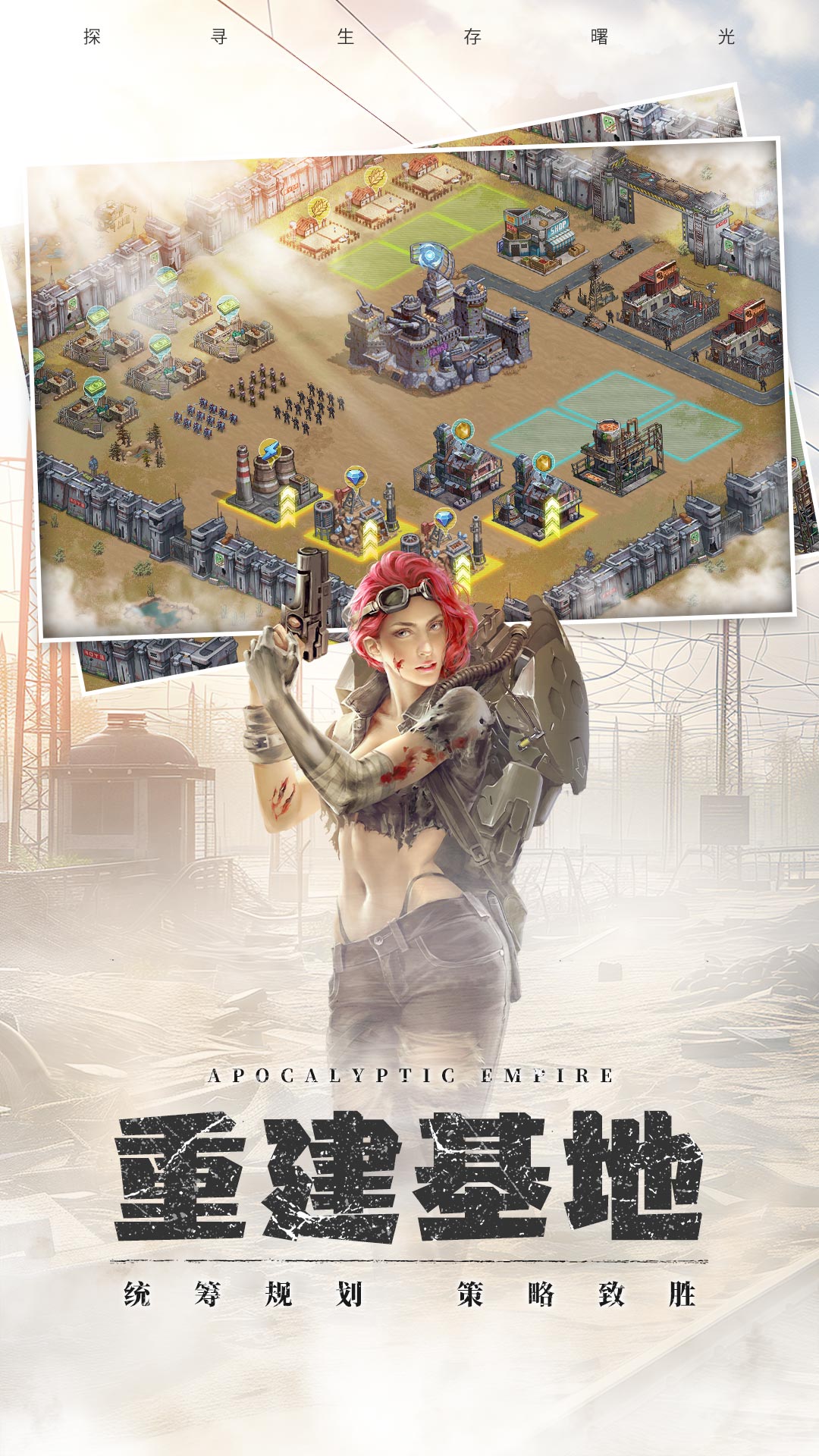 《末日帝国》是一款废土风格,丧尸为核心的模拟经营和讲究阵型兵种搭配策略末日生存游戏。未知的病毒席卷人类,作为末日市长,丧尸袭来,同伴被感染,市民身处危难之中,你需要在资源匮乏的末日世界中,组建超强幸存者小队,解锁土地、经营家园,不断扩大经济实力,强化升级装备,获取血清拯救同伴;攻打占领新土地,打造属于你自己的超强末日基地联盟。