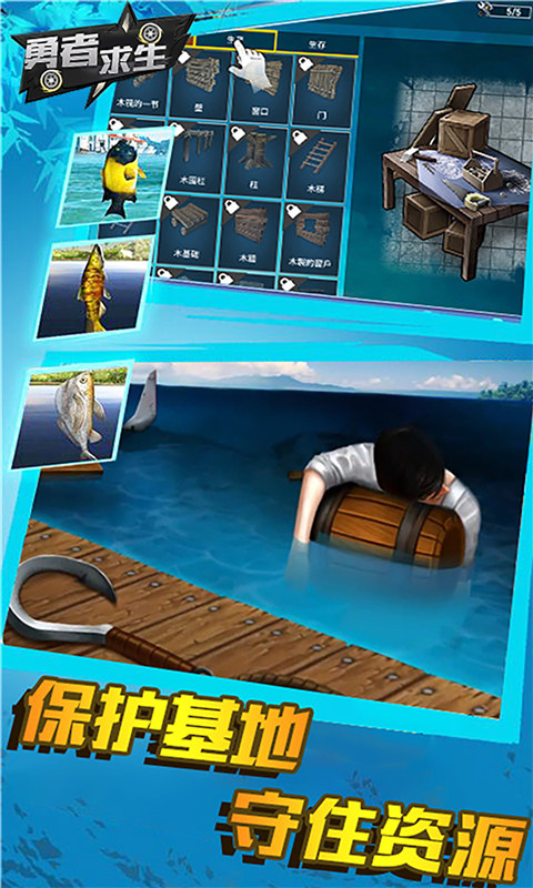 《勇者求生》是一款探索冒险的手机游戏,玩家在飞机上坠机了,是幸存者,并且只能在一个竹筏上。你可以制作新的物品,收集资源,尽你所能活下去!在敌对的环境中收集资源、生存!长按钩锁,瞄准物体,再拉回来即可获得原材料,不要离得物体太远,有一定距离限制。