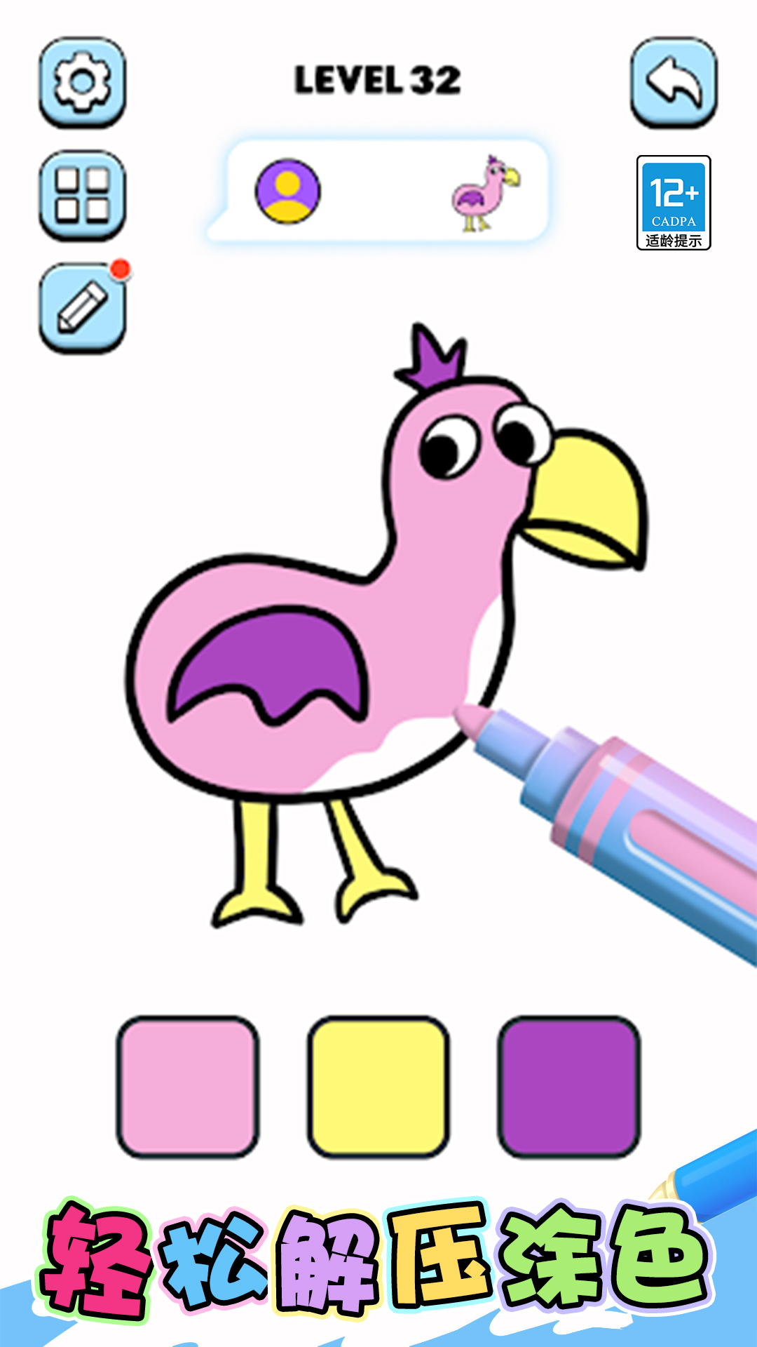 《涂鸦乐园》是一款卡通画风,休闲解压的模拟游戏。游戏中玩家将化身技法熟练的大画家,进行涂鸦创作。根据不同的主题,从线稿开始绘制,然后为每一个细节精心涂色,制作出完整的画作。游戏主打休闲减压,即使没有美术功底也不必担心,只要跟着引导步骤进行,每个人都能成为艺术大师。