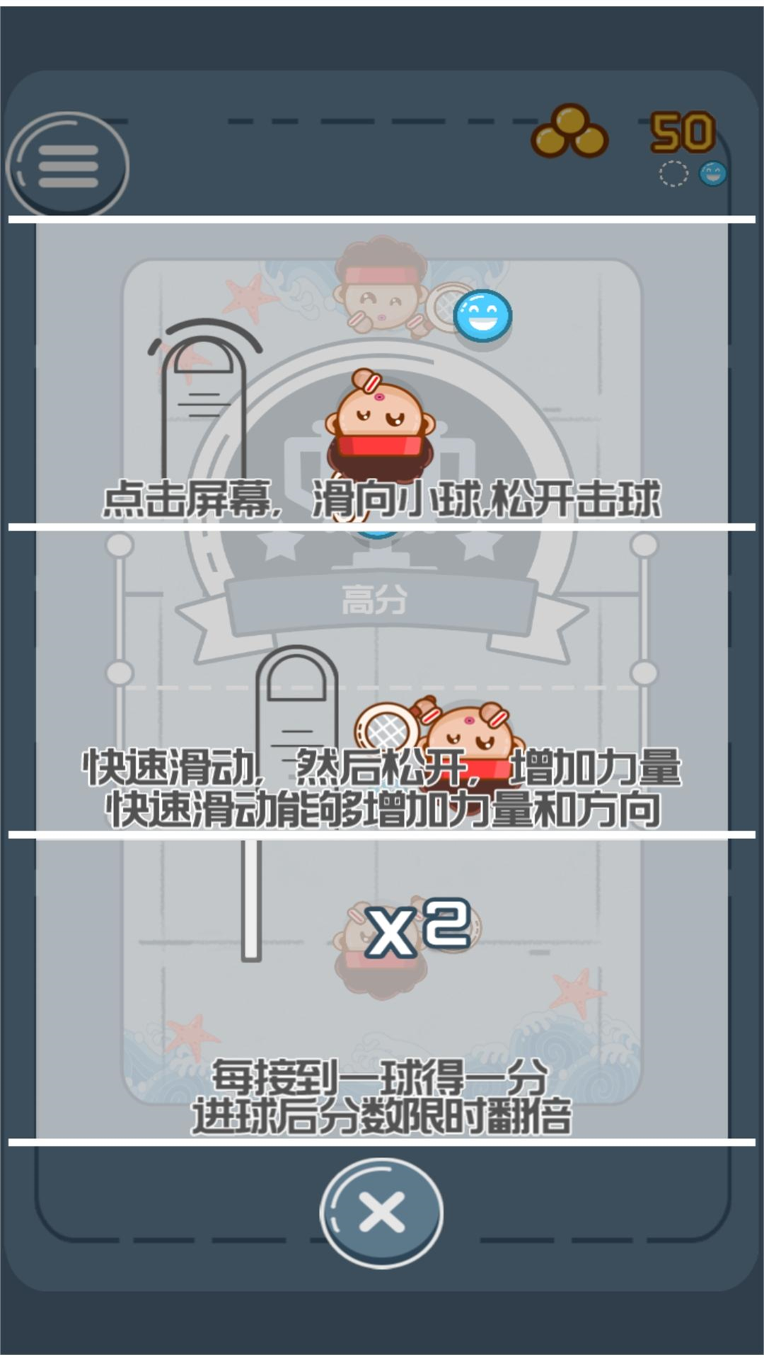 是一款以打球为主要操作方式的挑战类游戏。在这类游戏中,玩家通常需要点击和左右移动,将小球打回去,即可完成挑战。