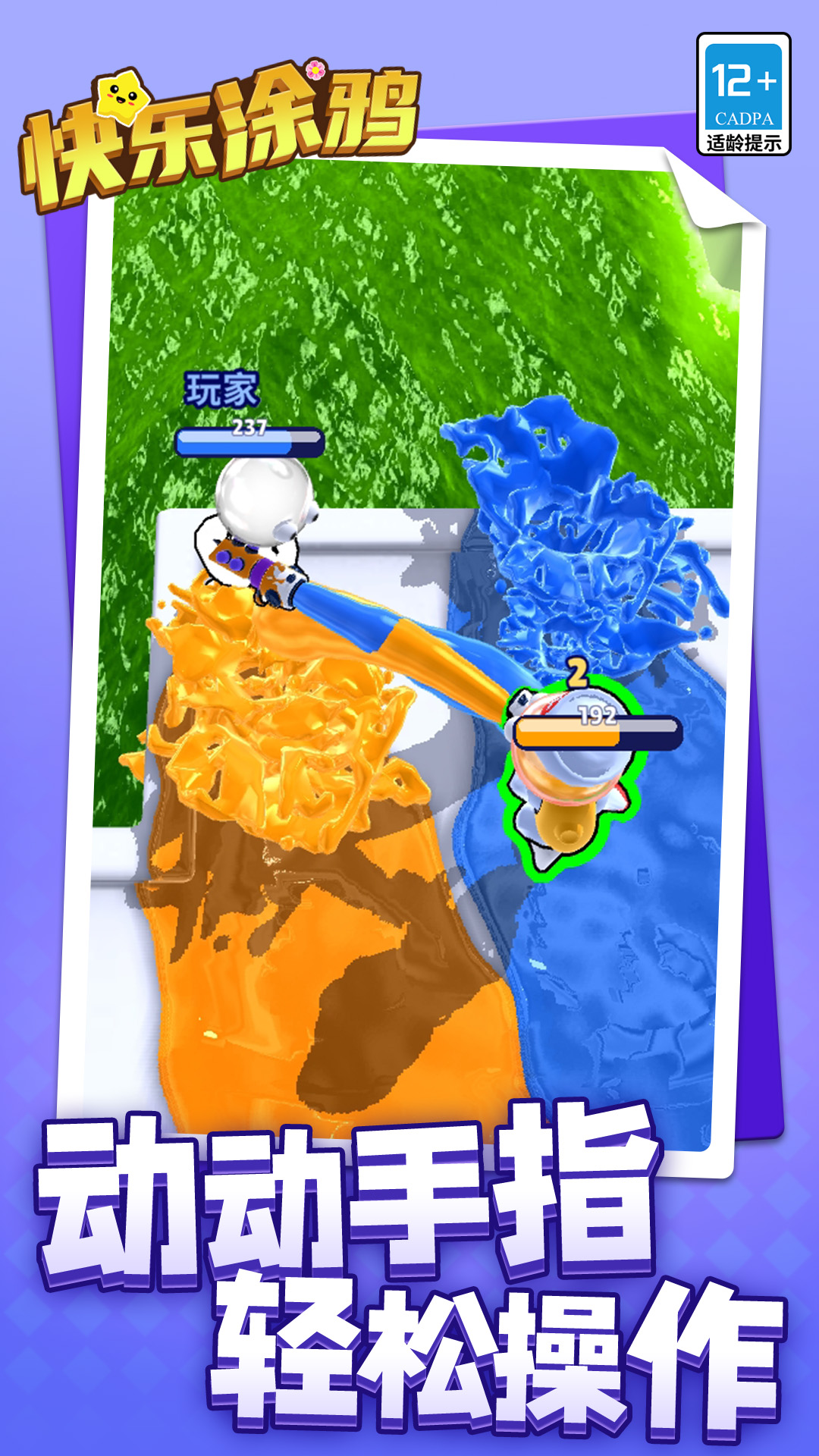 《快乐涂鸦》是一款独特的多人射击对战休闲游戏,在色彩战争中玩家能够进行独特的多人射击体验和自由动作互动设定哦,在游戏里,玩家必须与团队争夺比赛场地的颜色,玩家需要将油漆喷射涂抹在周围并把对手基地涂抹为玩家队伍颜色由此来获胜。快来感受独特的射击对决吧!