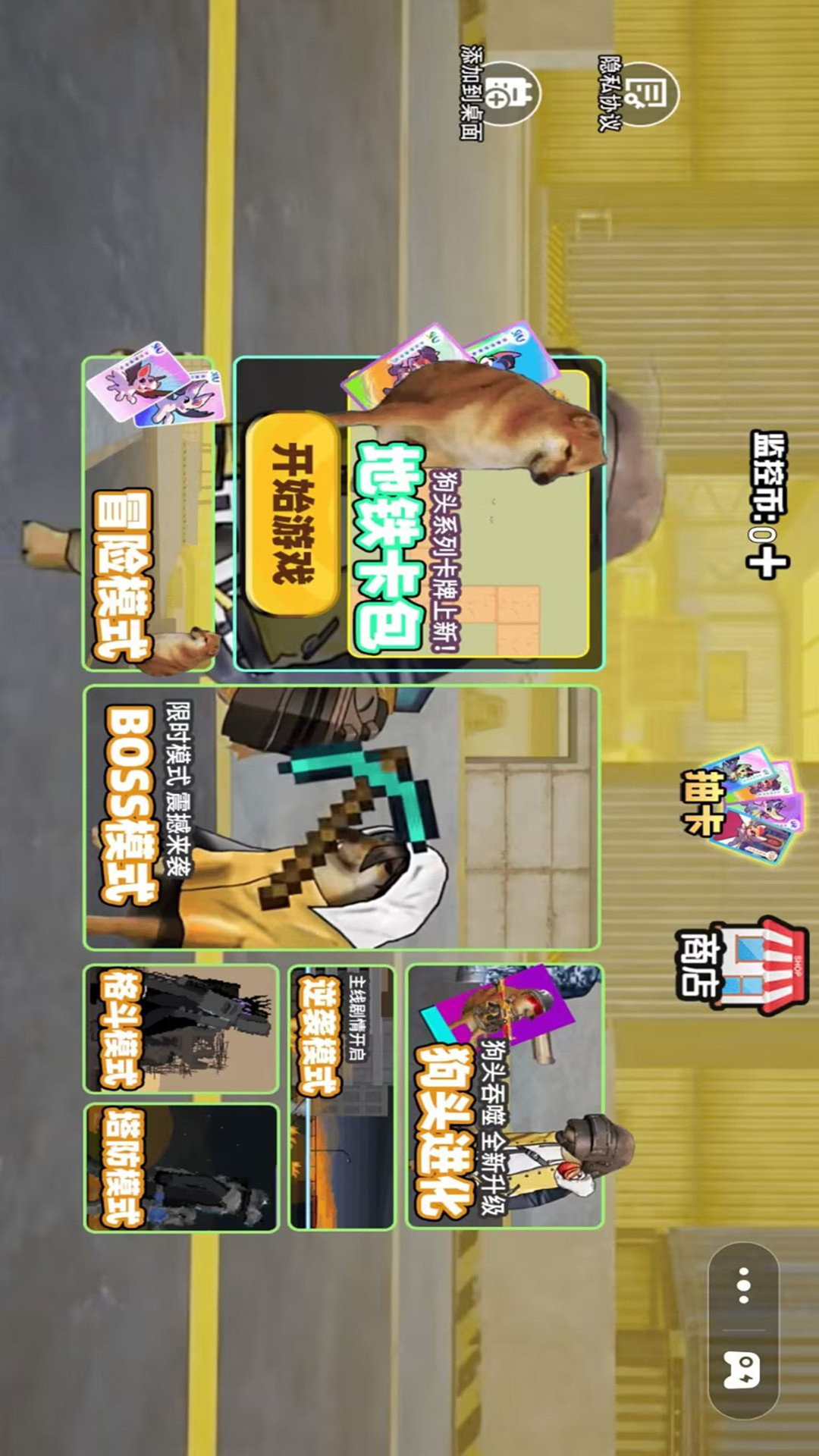 该游戏这是一款冒险探索类游戏,狗狗逃生消灭所有的马桶人,领取游戏奖励,抽奖解锁全新卡包,一起冒险生存挑战吧。