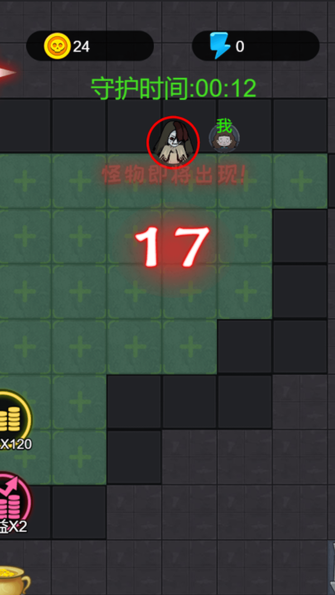 游戏中玩家只可以在房间中的空地板上进行建造,玩家点击空地板后,出现建筑菜单。游戏中玩家需要根据自己当前的经济选择性建造建筑,发现一条符合自己发展的道路。玩家需要将鬼击败或者抵御至天亮方可获胜,反之鬼抓到玩家则玩家失败。躺在床上就能赚钱,用你的钱购买建筑,建立你的设施和防线,共同抵御猛鬼吧!