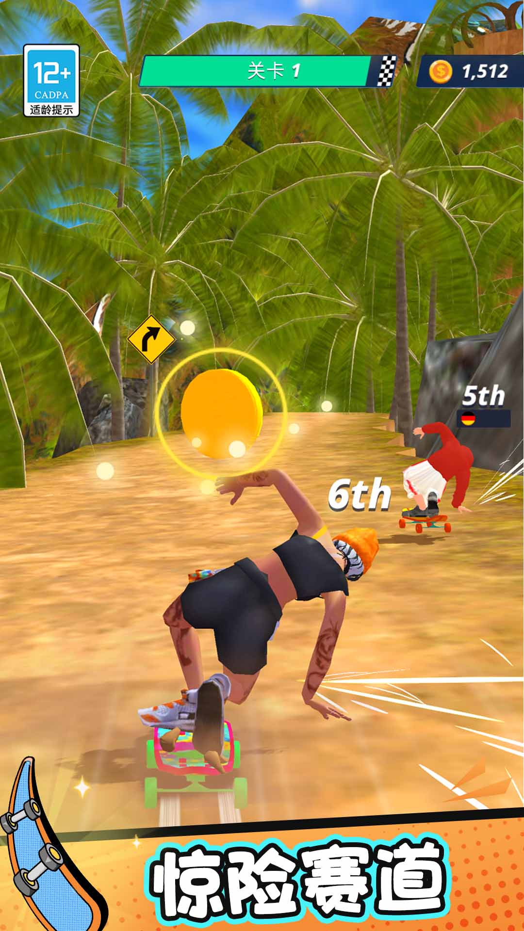 极速滑板是一款模拟类跑酷游戏。游戏将带你进入一个充满速度与激情的滑板世界。与来自世界各地的滑板达人一同开启竞赛模式。在竞赛过程中,不仅要应对复杂的赛道环境,还要与其他对手展开激烈的角逐,尊嘟超超超刺激!