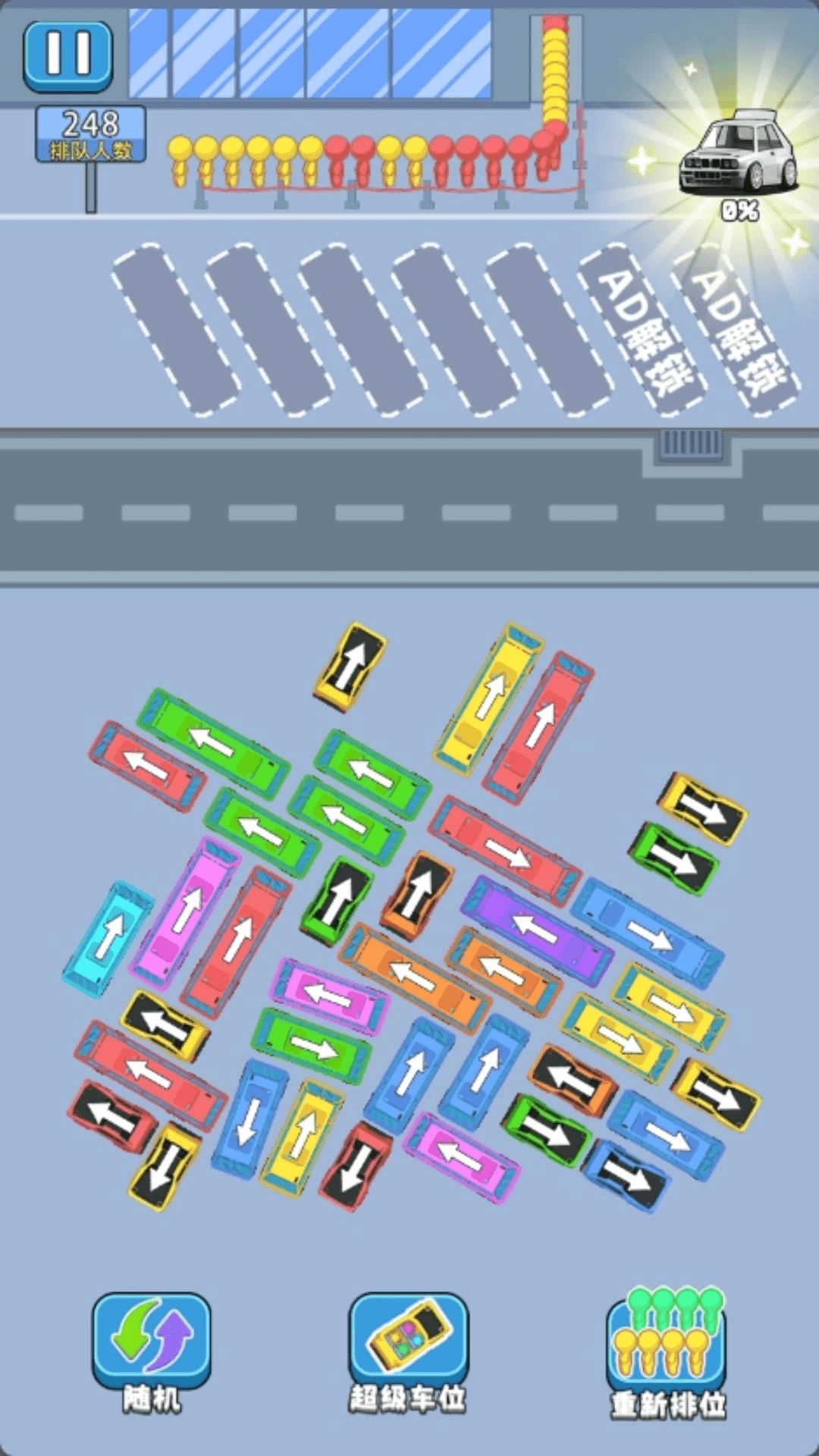 一款火爆的休闲小游戏,巨大的停车场中停满了各式各样的汽车,作为停车场指挥官的你需要把所有的汽车都合理的驶出,同时让他们装满各自的客人,玩法十分烧脑,具有挑战性,还不来试试!