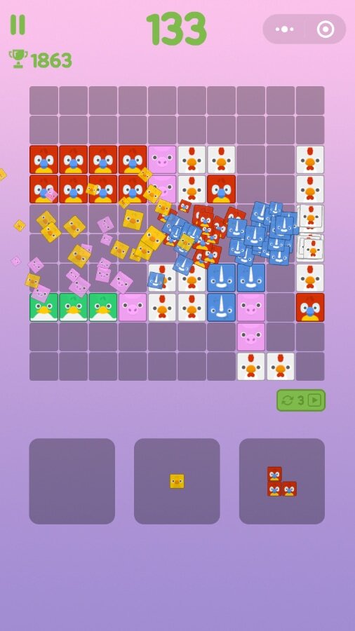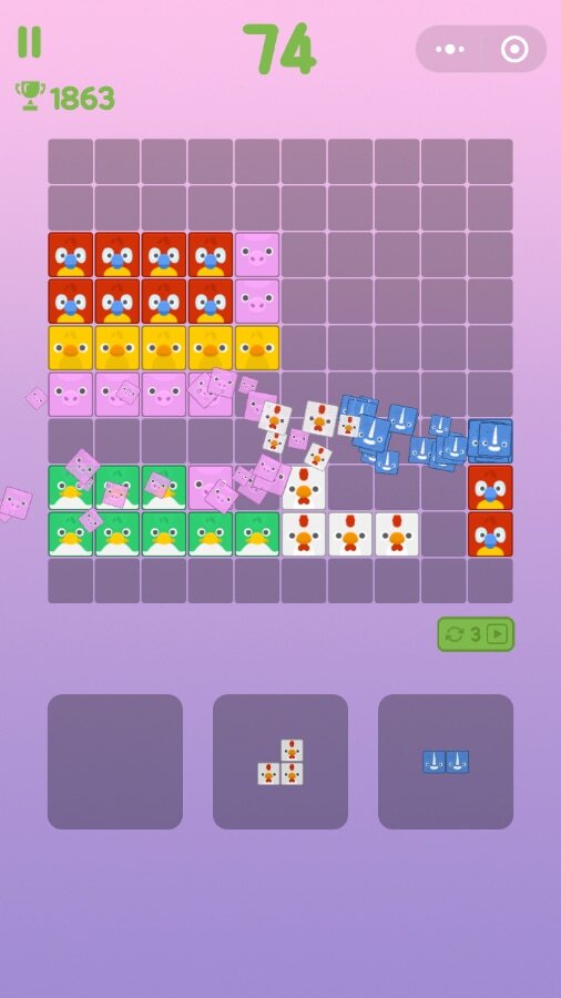 这是一款超可爱的动物方块消除小游戏哦。它采用了类似俄罗斯方块1010的拖拽玩法,游戏中有6种超级可爱的动物拼图可供消除呢。这个游戏非常适合与好朋友们一起玩,大家可以在游戏里欢乐地进行大比拼。要是在假日休闲的时候玩这个游戏,那可真是再合适不过啦!