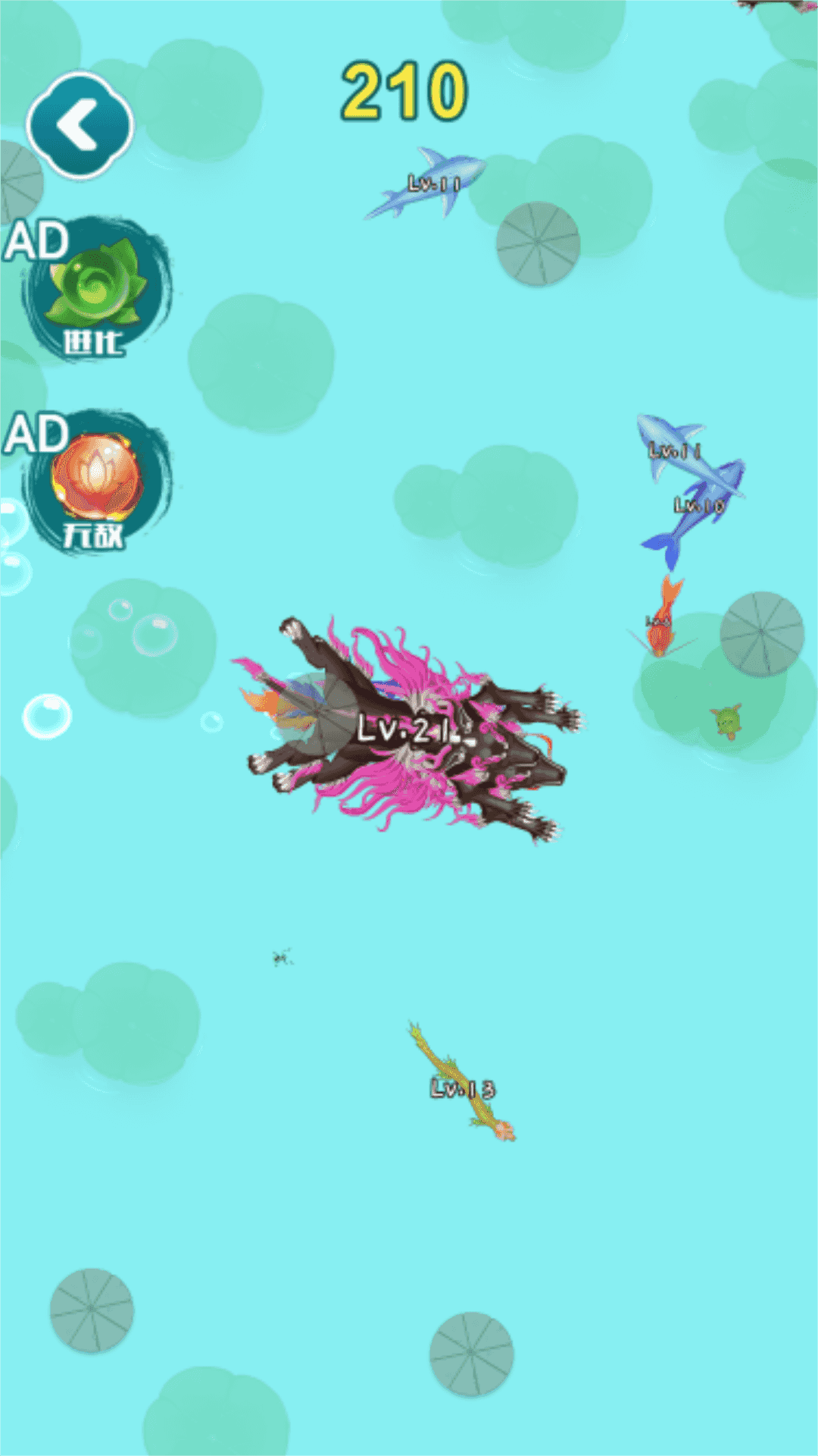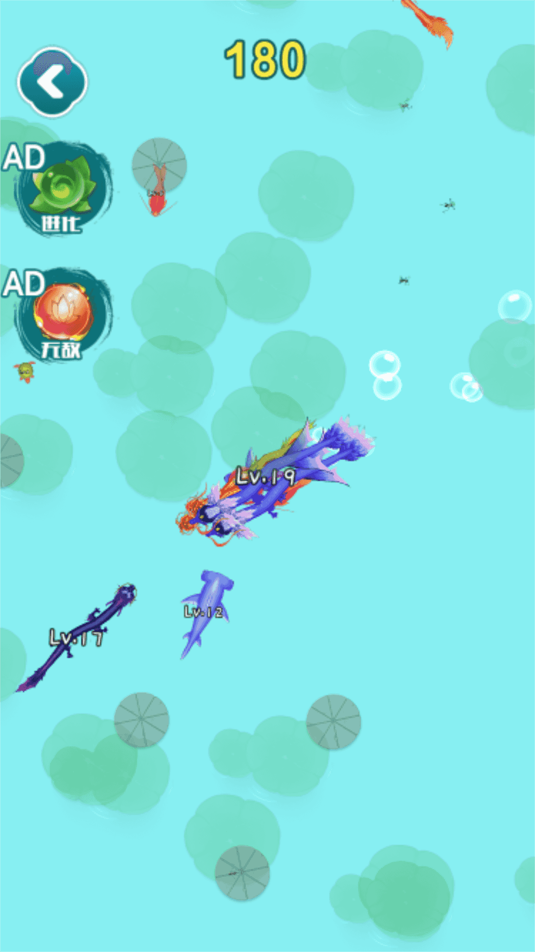 一款休闲类小游戏,游戏的核心玩法为玩家通过不断吞噬对手,不断的进化自己,进化成神龙,获得高分,重复挑战,该版本无世界观背景设置。游戏主要玩法为滑动屏幕控制角色移动,吞噬生物来进化自己,不断挑战更高分吧!