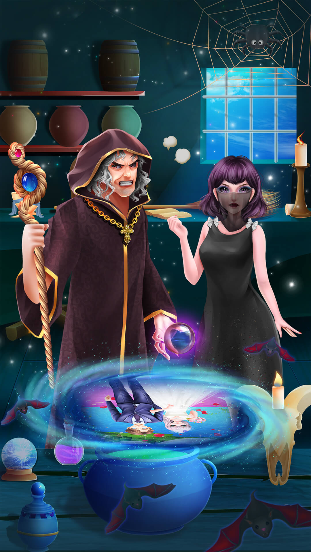 1、巫师选取各种材料制取药水。