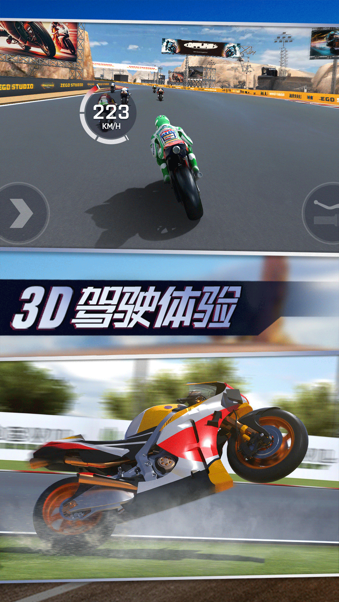 这是一款摩托车赛车游戏,让你在赛道上尽情驰骋,集中精力提高赛车技能,体验紧张刺激的赛车动作。您要通过速度和控制来争夺高分,与其他赛车手比较您的技能,并在自行车游戏的不同赛道上挑战他们。观看排行榜,通过击败他人的分数保持领先地位。