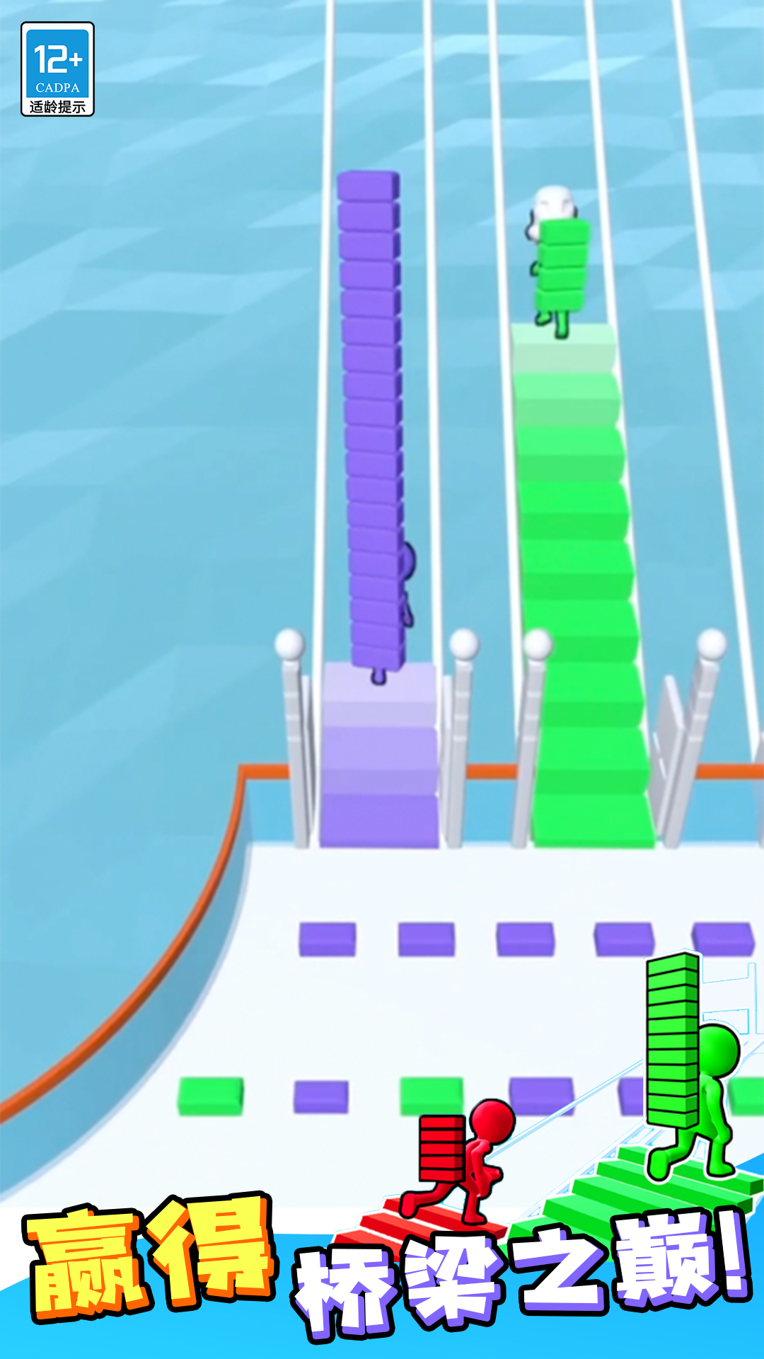 《搭桥冲冲冲》是一款极富趣味的搭桥竞争游戏!在这个游戏中,玩家们将通过与其他人的竞争来收集积木,并利用这些积木来建造属于自己的桥梁。然而,你必须时刻提防其他竞争者的突袭,因为他们可能会试图抢夺你的积木。游戏中提供了多种类型的地图,包括滑梯、蹦床、滑索、梯子和电梯等等,这些地图将为玩家们带来不同的挑战和乐趣。你将体验到无与伦比的乐趣和紧张刺激。准备好迎接挑战了吗?快来加入这个充满惊喜的游戏世界,展现你的搭桥才华吧!