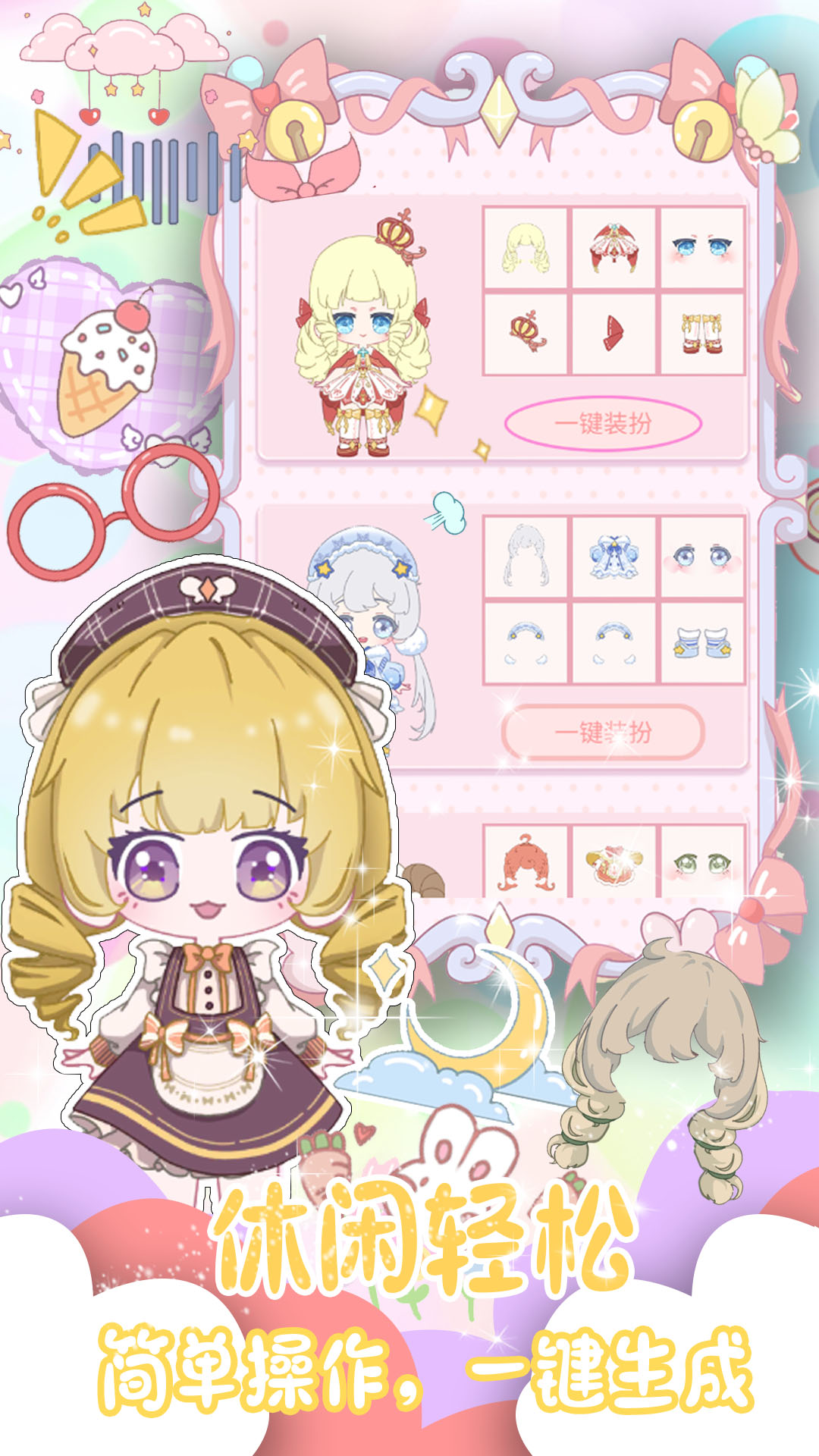 与闪耀少女甜蜜互动,解锁更多个性化服饰,搭配养成系萌萌少女!