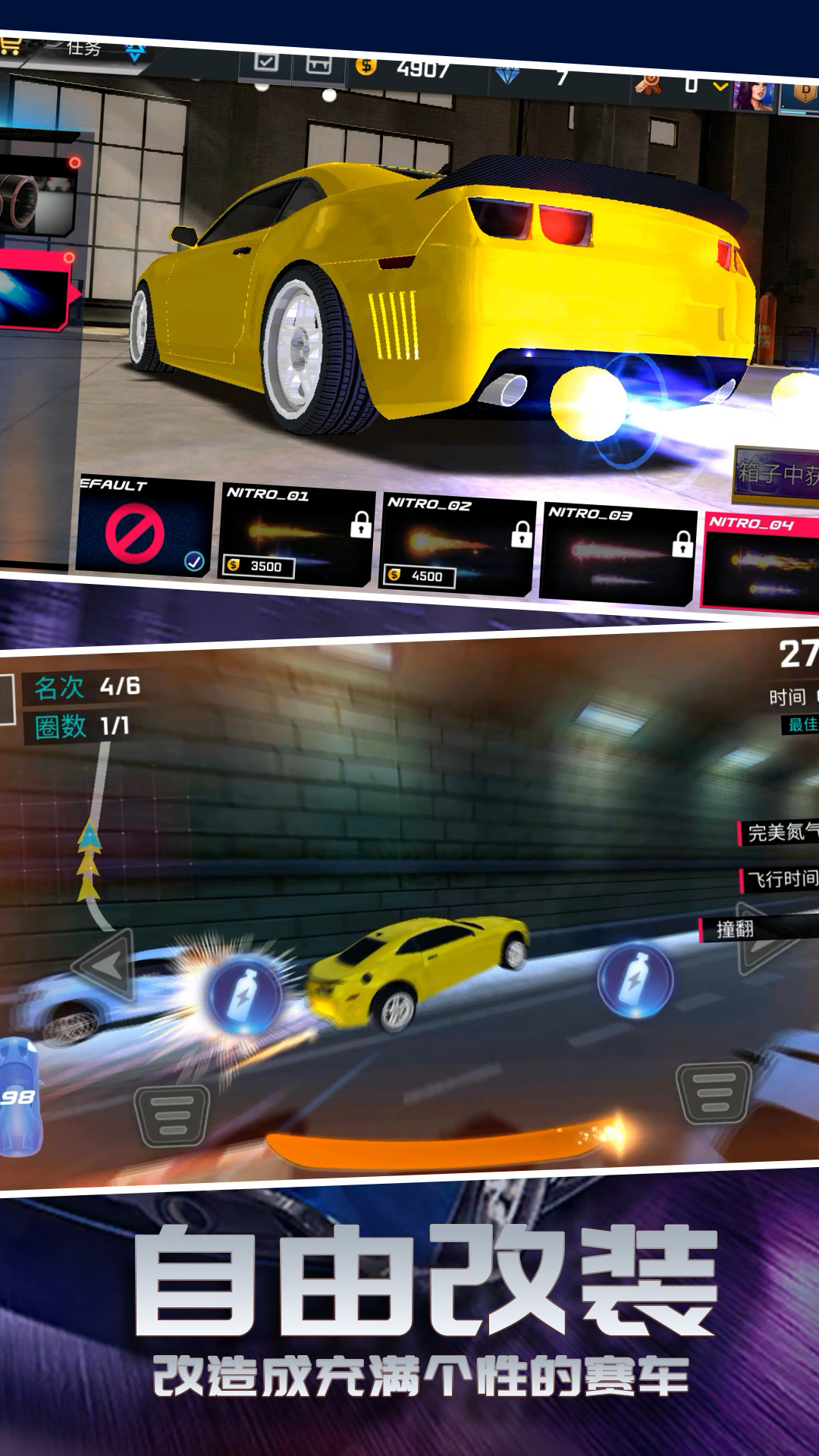 •换上你喜欢的车漆、涂鸦和造型,你就是超酷的赛车手!