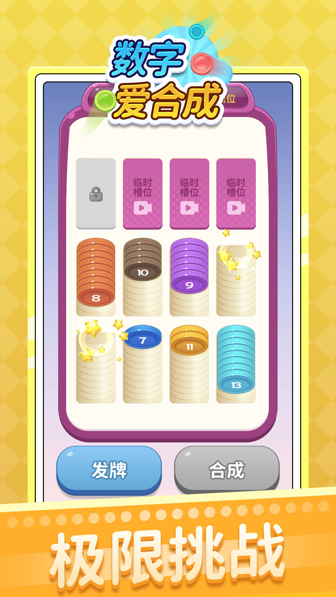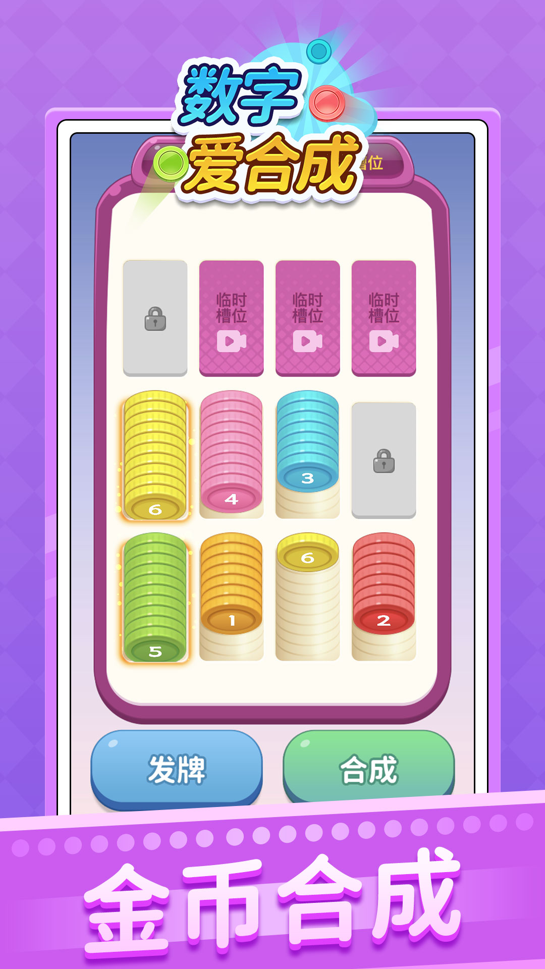 是一款休闲有趣的数字合成消除类小游戏。玩家通过把相同颜色和数字的金币挪放到相同的格子中,格子满了既可以进行合成,获得更大数字的金币,随着数字变大难度将越来越高,不同的挪放方式将决定是否能顺利进行下一步,考验玩家的思考和动手能力,充满挑战性。