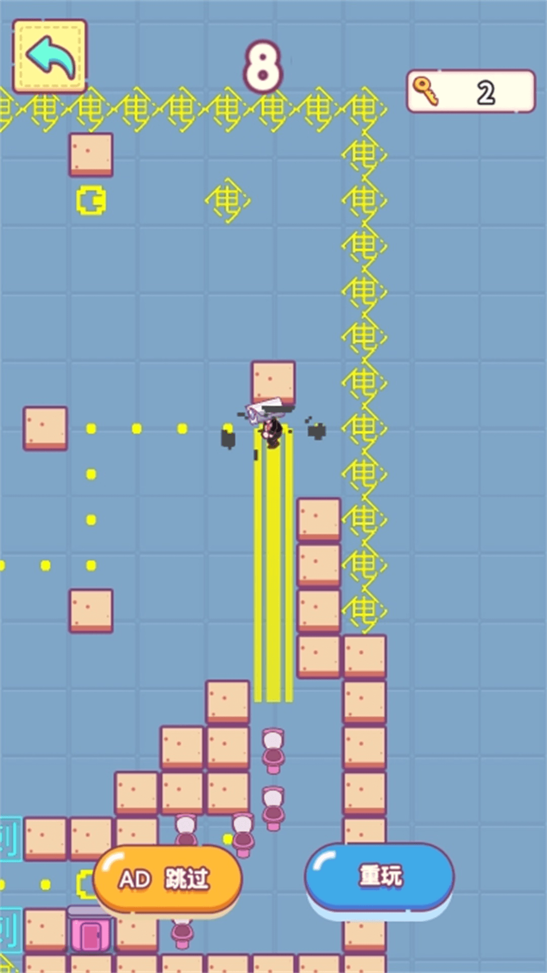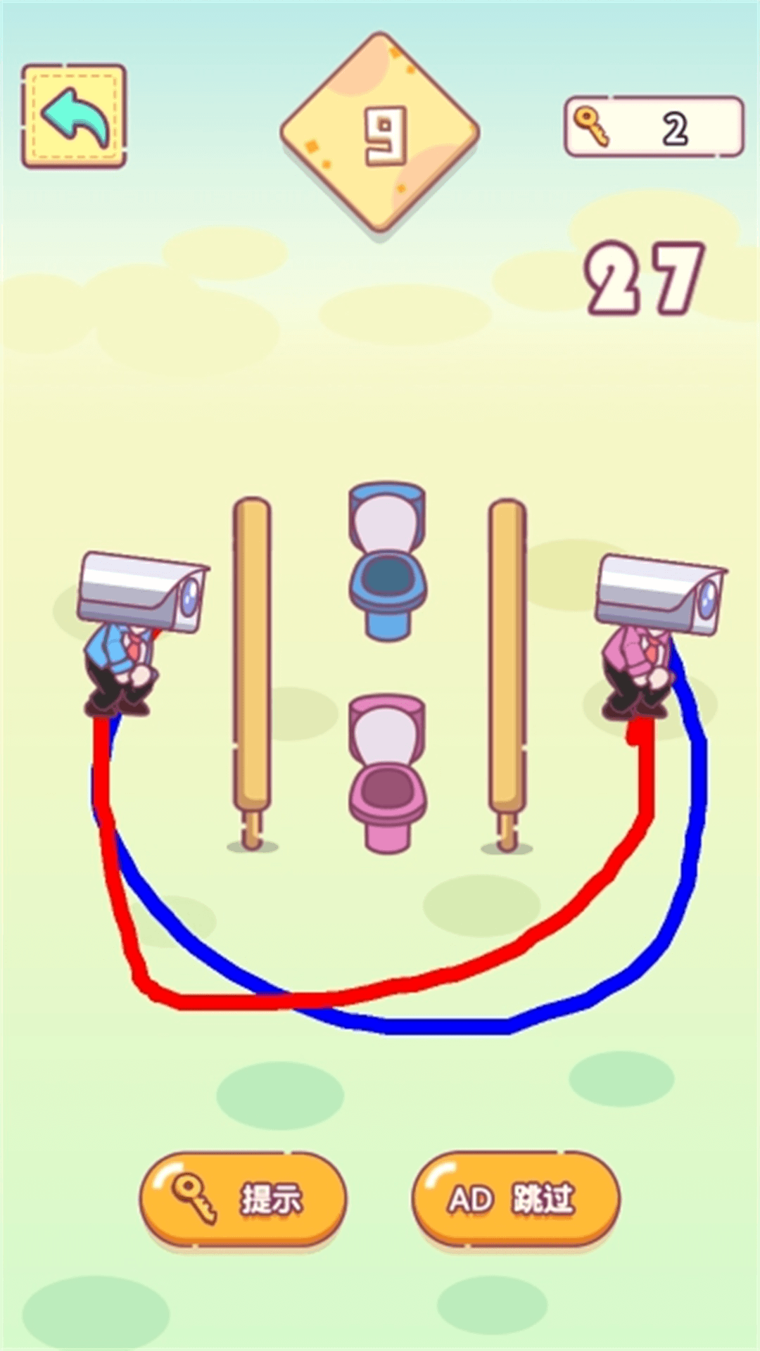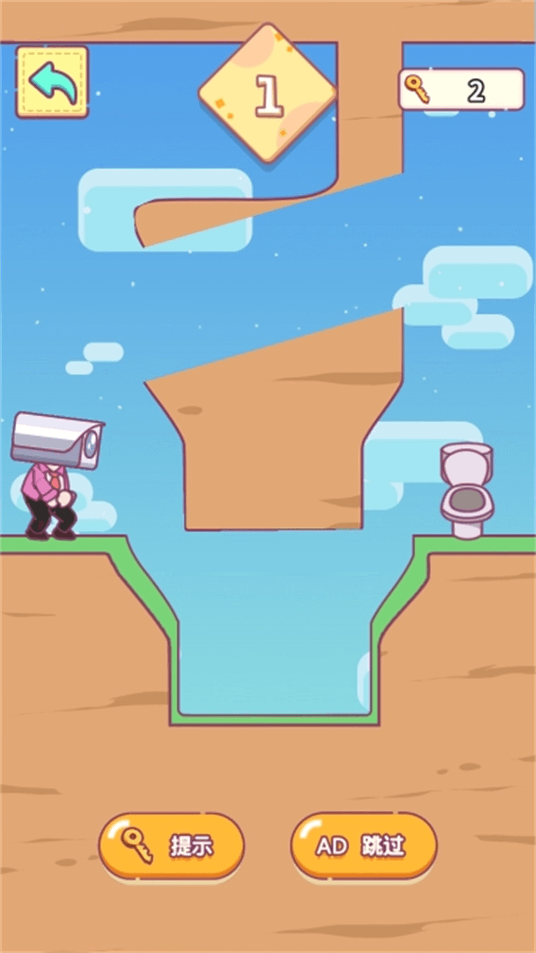 一款休闲类小游戏,游戏的核心玩法为画线让监控人去上厕所,该版本无世界观背景设置。游戏主要玩法为画线。进入游戏后,滑动屏幕画线,切割头顶的地形,让地形落下来给监控人铺路,让监控人成功上厕所,完成关卡,快来体验吧!