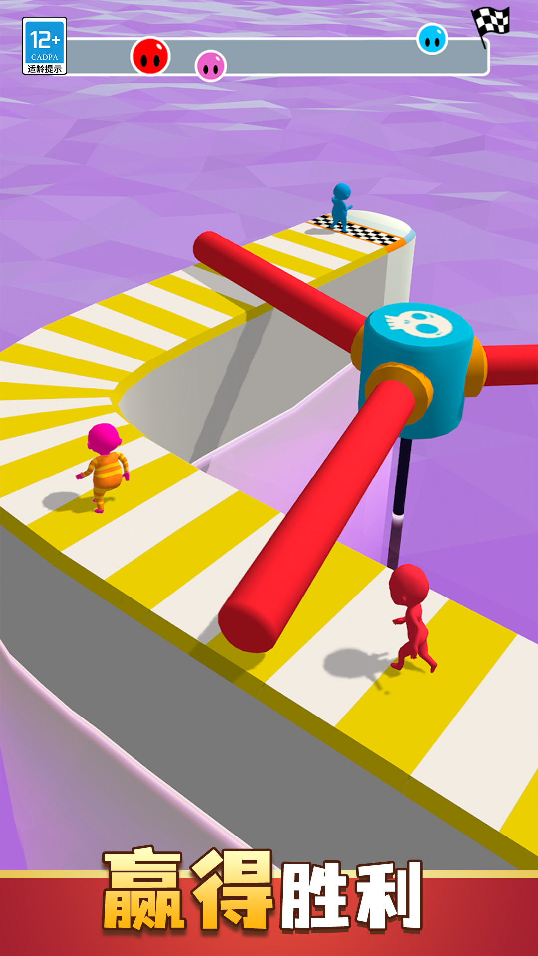 游戏内拥有多款皮肤造型供你选择,你可以任意选择自己心仪的皮肤造型,你还可以自由指定一个有趣的胜利姿势,在冲关胜利时展现出来,这些都会让你更加沉浸式体验到这场赛事的乐趣。同时在关卡内,还设置了不同的关卡道具,有任意出拳的悬崖赛道,有需要你等待时机冲出包围的旋转机关,还有无需操作只用你坐着享受的滑滑梯,每一个机关道具都会让这场闯关变得更加生动有趣。